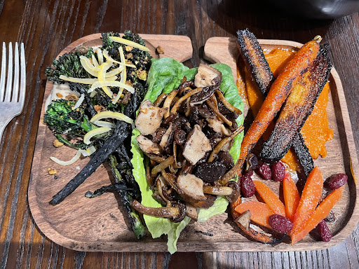 That all left a bad taste in my mouth but I was open to letting it go if that was only the bad taste left in my mouth. I had a vegan chef plate and my meal was mostly very good except the chef seemed to mix up burnt vs slight char. The broccoli was burnt and inedible, I had to drink more of their wine and plenty of water to get the burnt taste out of my mouth. Due to the way the host had disregarded my request for another table I didn’t bother pointing out the poor execution of the burnt broccoli. My wife’s meal was the half chicken and she said it was largely just oily and salt. The wine was fine.