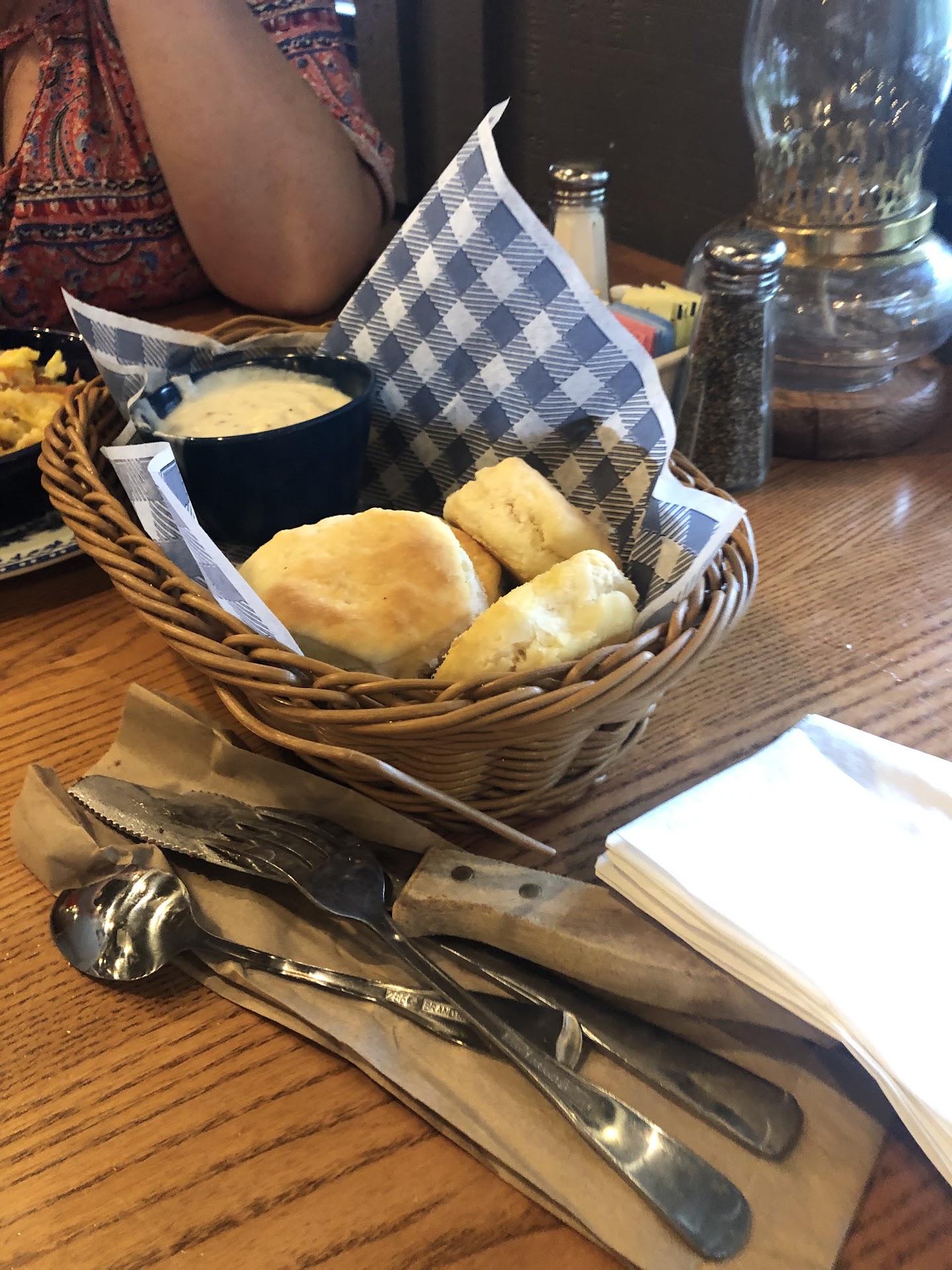 Read moreI am modifying my review from 3 stars to one, the service has gotten even worse from the last visit. I could understand slow service on a holiday but last night my family arrived about 7pm and were seated by 7:10. We placed our orders and received beverages in a timely manner but then no food, no refills of beverages and no update on our orders. After 45 minutes I went to the Hostess stand and requested a Manager stop by our table. Apparently the Hostess notified our server and she finally stopped by and said they were out of what my granddaughter ordered she said our food was ready but because they didn’t have my granddaughters order they were holding our orders (which were barely warm and dry when they were served). My granddaughter ordered chicken pot pie she was told they were out of it by the server when she first ordered, then she ordered chicken and dumplings which she was not told they were out of until after almost an hour. Again I asked for some muffins or biscuits because by now it’s almost 8pm and haven’t received anything except our initial beverage order. The Manager did stop by and said he would check on our orders. So I asked if they planned on serving the other orders that have been sitting for half and hour, he said no he would have the orders remade. About 5 minutes later we received our orders except for my granddaughter but our food was not fresh it was barely warm. I had fish that was dry and cold, the vegetables were also cold. When my granddaughter finally received her food it was very hot because it was freshly made. After well over an hour and requesting biscuits or muffins we still did not receive any. The manager stopped by again and I informed him our food was not hot and we never received our bread. The Manager finally brought a basket of bread and said we didn’t have a bill, considering the fish was cold, dry snd uneatable that was the least they could do. Cracker Barrel used to have good comfort food and friendly service but now it’s horrible. My advice if you risk a meal at Cracker Barrel only order breakfast that is all...
