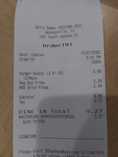 Read moreWent inside and ordered a DQ Dude basket to go. Tried to eat the Dude when leaving the parking lot only to bite into a rock hard piece of meat. I returned to the store and had the cashier examine th sandwich. She immediately told the 2 teens in the kitchen it was bad and they thought it was real funny. She asked if I wanted a refund and I said no, I'll take a Beltbuster please. The cashier told the cooks to fix the Beltbuster and that it better be fresh. She handed me the sandwich and said please check it before you leave. This was Friday-June 9th around 5:45 P.M. If you are the owner, I hope you're reading this. I'd fire these 2 punks so fast, they wouldn't have time to say...