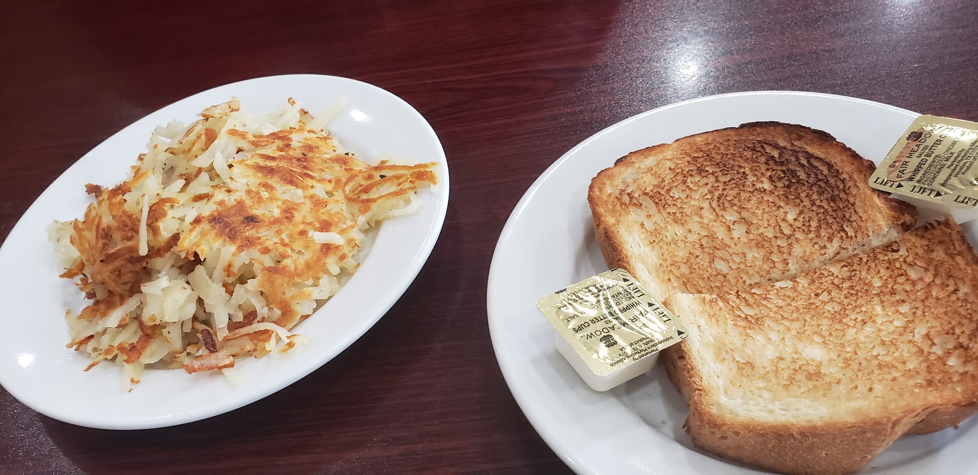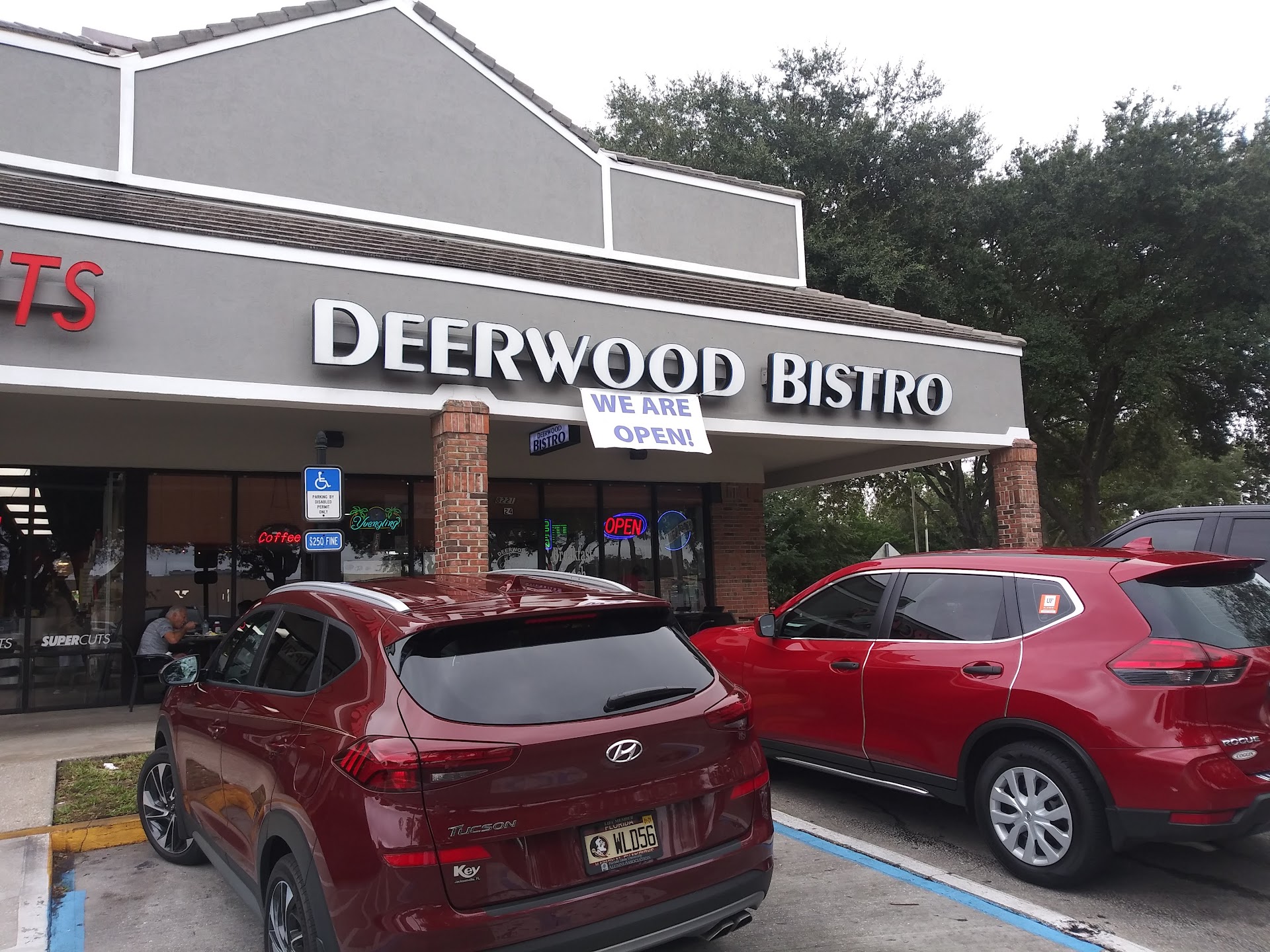 Read moreWe really really wanted to give Deerwood Bistro 4 🌟 or even 5 🌟 but to many small things caused this 3 🌟 rating. First parking is a challenge in this strip mall on a busy Sunday morning. Next as we entered were greeted and asked to place our order. Since this was our first visit we wanted to view the menu at the register were the order would be entered as opposed to at the table with a server. With customers behind us we felt rushed and quickly looked at the menu...no Eggs Benedict for me on the menu plus the rush makes we give this 3 🌟. I settled and ordered 2 eggs, Bacon, Hash Browns and Rye toast $8.79, OJ $2.99 and Coffee $2.59. Bill went with the first item on the menu Eddie's Meat Lover's Skillet $11.99 and Coffee $2.59. You are given a number and told to find an open table and serve your own beverages...not a winner in my book so 3 🌟. Both meals came out quickly in the busy place so 5 🌟 for that. My breakfast was good with the Sunny Side Eggs perfect as were all the sides. Bills plate was huge but with the exception of the eggs a looser. Hashbrown Potatoes were 90% of the plate and greasy with semi burnt onions and mushrooms. Peppers and Tomatoes were a mismatch as was the melted cheddar cheese. Meat??? Where's the meat? One small, did I say small chunk of burnt sausage, no bacon that Bill could find and a few small pieces of ham...a big mistake to order and 1 🌟. I am sure Deerwood Bistro is better than this as the place was super busy but for us it was not on our list to...