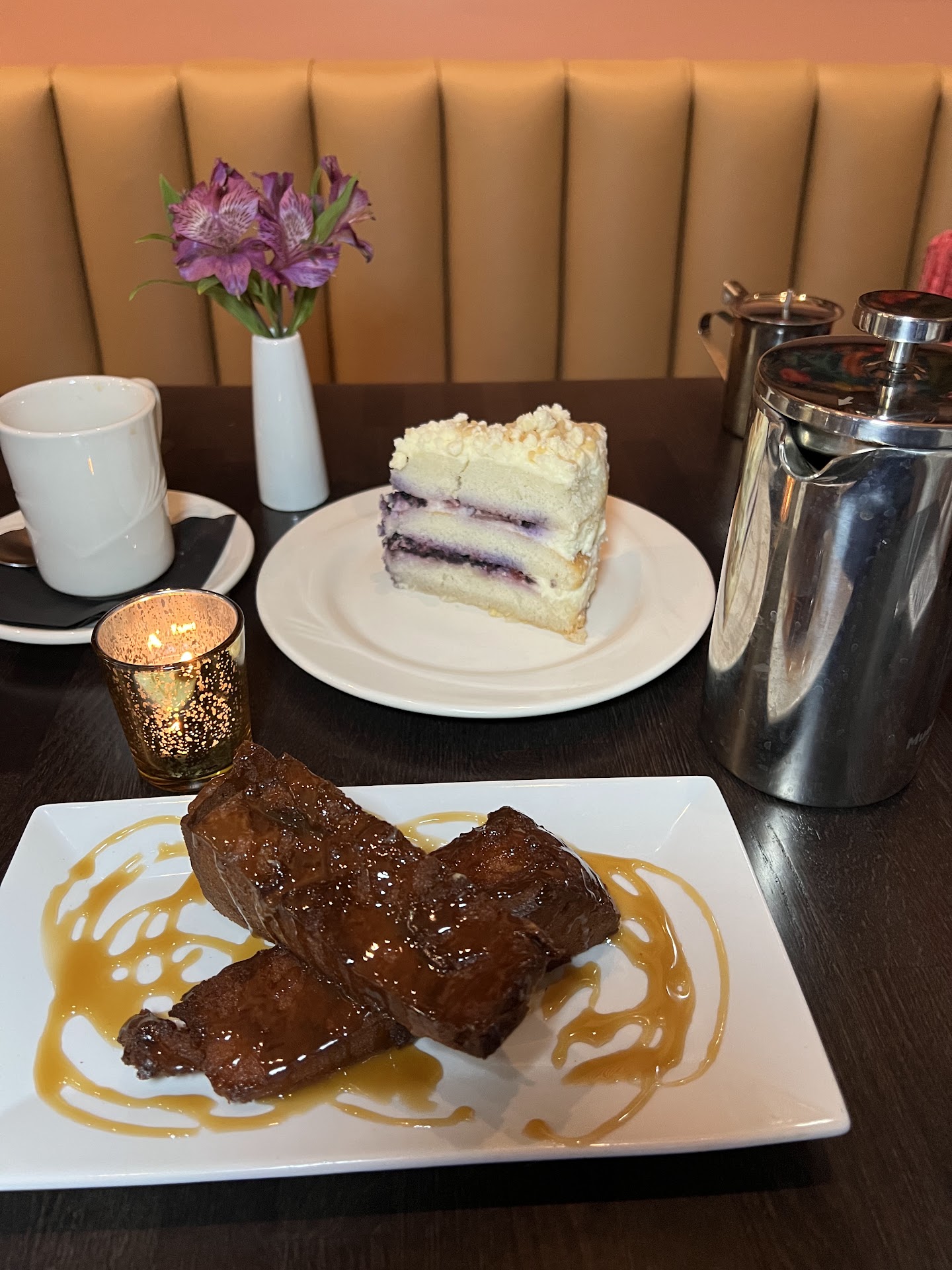 We finished with dessert and coffee — and let me tell you, do not skip it. The Banana Bread Pudding and Chantilly Cake were both amazing, and the French press coffee was honestly the best we’ve had in town. Rich, smooth, and just the right way to end a perfect meal.
