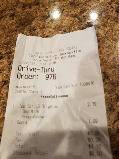 Read moreI am done with this location. On several occasions I've gotten cold breakfast sandwiches. It happened so often that I started to order my stuff extra hot because I don't have time to turn around and go back for them to fix it when I'm on my way to class or work. I've gotten breakfast sandwiches that were still frozen before. Very often I pick up coffee for someone else and each time I tell them just one pump of the skim milk and I can't tell ya how many times I've had to have it remade because they put way to much in it, to the point that it looks like creamer has been put in it. Even though Dinkin's things say if it isn't right let us know and we'll remake it for you I get attitude each time and they dump a little out and add more coffee trying to takr the easy way and it still isn't enough. I don't wanna pay for something that I know they aren't going to dribk. I work in the restaurant industry so I hate being that person but these are consists problems here and today just was the last straw for me. I ordered a lg. iced coffee and received a med. When she handed me my coffee I said wait are you sure this is mine and she said yeah so I thought maybe she had misheard me and put through a med. I get to work and I'm looking at my receipt and I've been charged for a large. Even though this location is super convenient for me I'll go down the road or to Starbucks instead. Id rather pay more and have things right than to be constantly...
