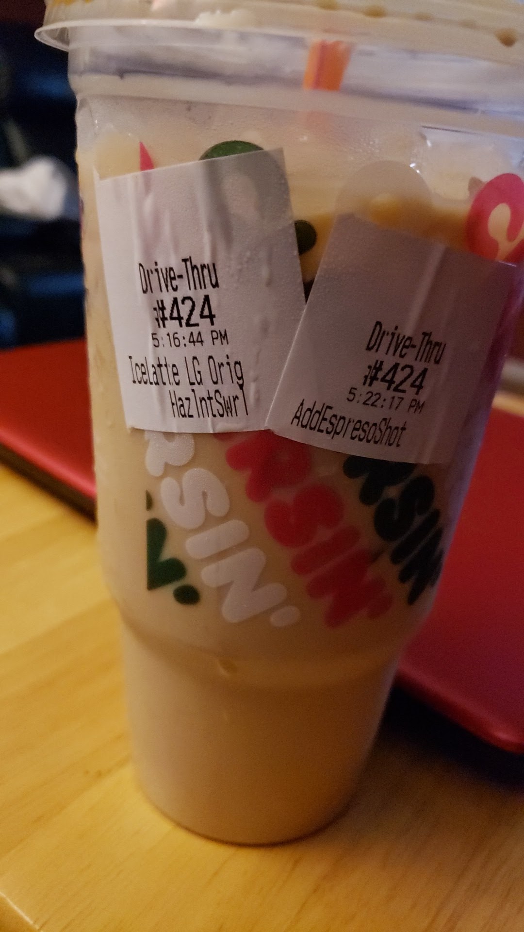 This was my wife's last straw with Dunkin and we bought ourselves an espresso maker ourselves. Our coffees have been perfect ever since at a fraction...