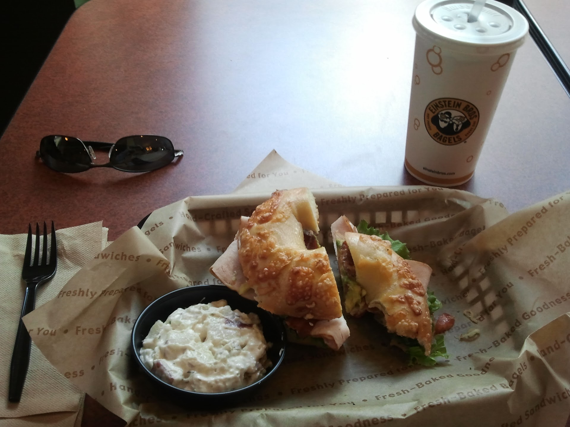 Read moreMy husband and I have eaten at this Einstein location many times since we moved to Jacksonville in 2022. It is hard to know what to expect, even if we order the same item from one meal to the next. One time the menu item is delicious, but the next time it is only passable. We brought friends on our last visit and planned to have a leisurely lunch inside the restaurant while overlooking Jacksonville's gorgeous Memorial Park. Well, Einstein, its food and its employees were a disaster. As we opened the door, a female employee was yelling at a male employee, saying something like "It is your fault! I wouldn't do something that stupid!" In hindsight, we should have turned around and walked out. The food that should have been hot was cold. The cinnamon rolls were so hard that we couldn't cut them even with a pocket knife, and there was no decaf ready. So our plan to share one of our favorites did not work out. And our $60+ lunch was a complete...
