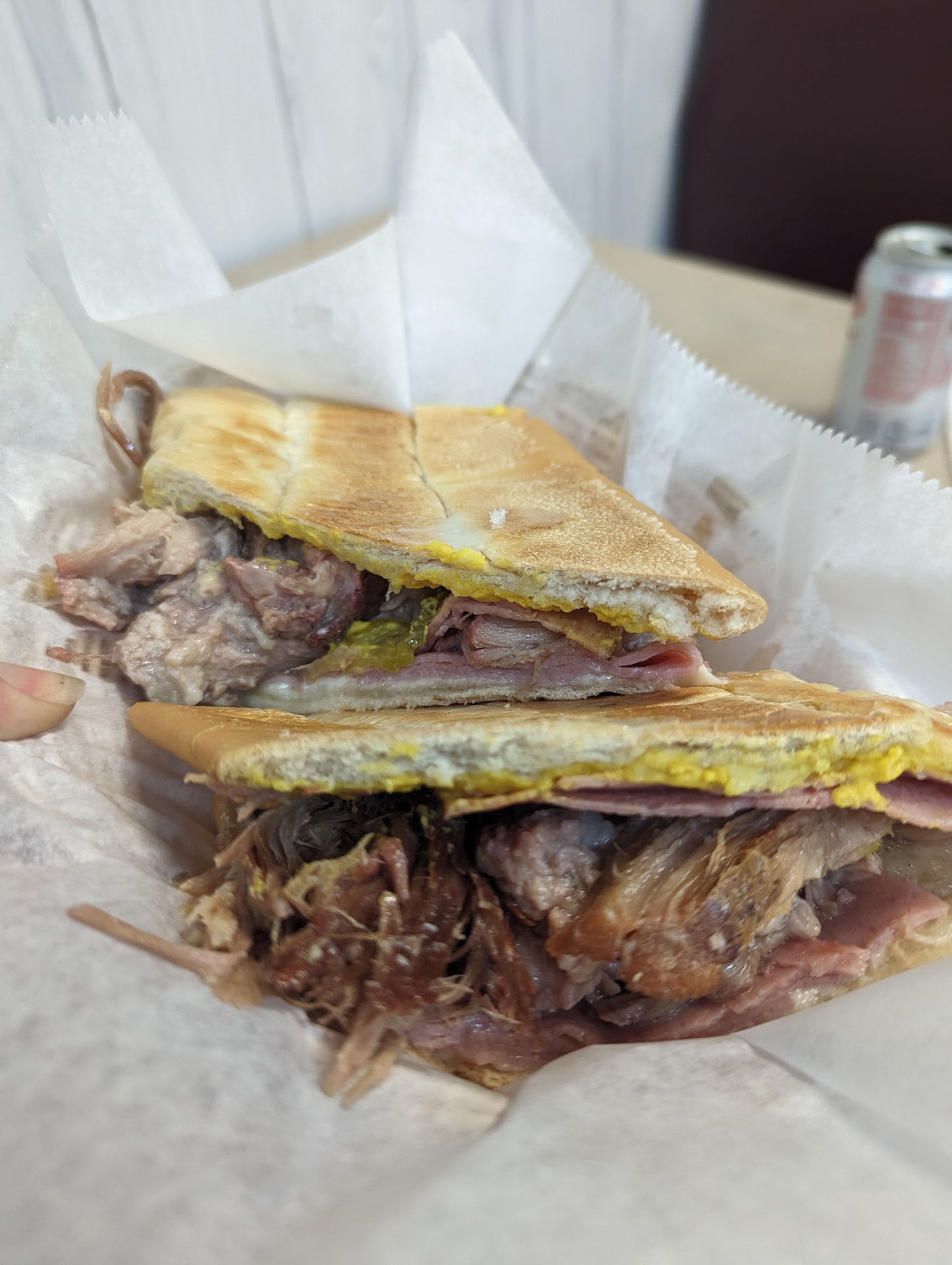 I've been coming to El Mofongo for many years. When I first started going, they had a small shop and it was primarily a bakery. It always smelled heavenly, but I was drawn there by the lure of a well-made Cuban sandwich and I was not disappointed! My father's family lived in south Florida, so I was introduced to good Cuban sandwiches at an early age. My search in most other cities only brought disappointment. When I stepped into El Mofongo, I knew my fortunes had shifted. Greeted by the owner, who although he's usually always on the phone taking orders - he still provides a big smile and good service, I was surrounded by customers from Cuba, Puerto Rico, the Dominican Republic and other Caribbean islands. He treated everyone like they were long time friends - including me. The sandwich was near perfection. The ham is thinly sliced, but the roast pork (made in house) is cut generously thick. Although the sandwiches are pressed - you get a substantial amount of meat in every bite. Generous cheese and just the right amount of pickle - you almost don't want it to end. At $6.50 for lunch - it's a bargain that won't be met in any other place in town! Each day, they also offer a buffet-style lunch. I've tried several daily offers (roast chicken, roast pork, black beans & rice, etc) and all...