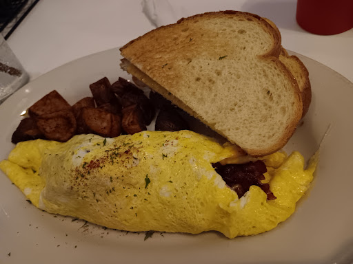 The reason I do occasionally go here is because of their incredibly convenient location based on my house. At this point I've tried a few items and the things that stand out are their omelettes and their waffles. Both are really good, but again, nothing I couldn't just whip up at my house. The omelettes have plenty of filling and are reasonably sized. The waffles are lite and fluffy with a good crispness on the outside. Unfortunately they don't have many toppings for their waffles so you're stuck with either the strawberry or blueberry "toppings". Both are super sweet and sugary and don't taste like real fruit.