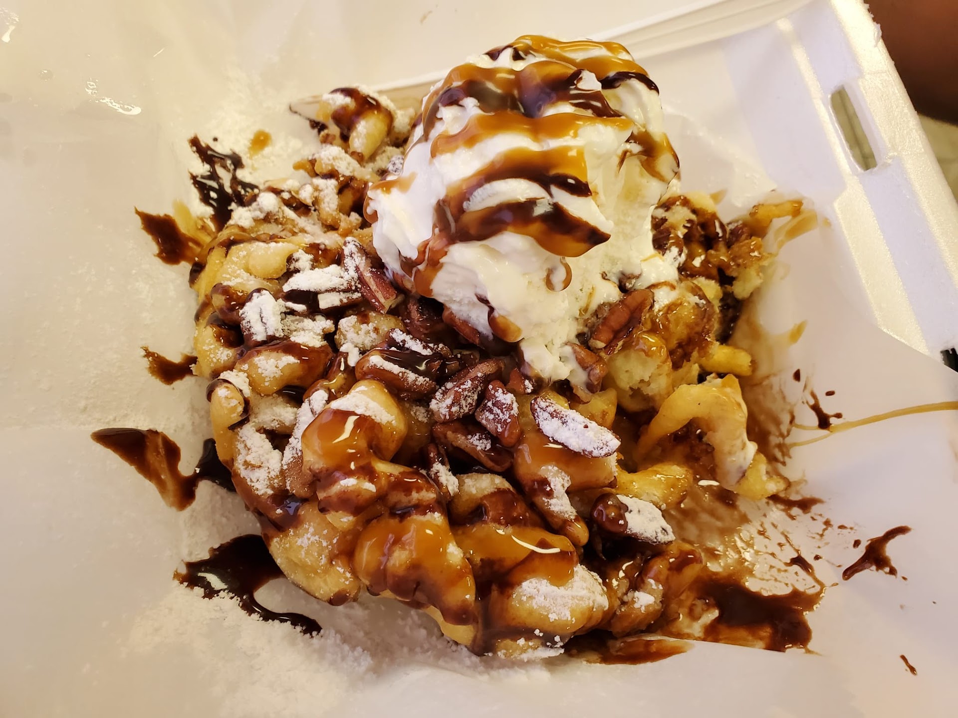 Funnel cake was soft where it wasn’t mushy from whatever ice cream. I’ll admit I could’ve checked for order accuracy, but after the entire exchange we were eager to not be around that energy.