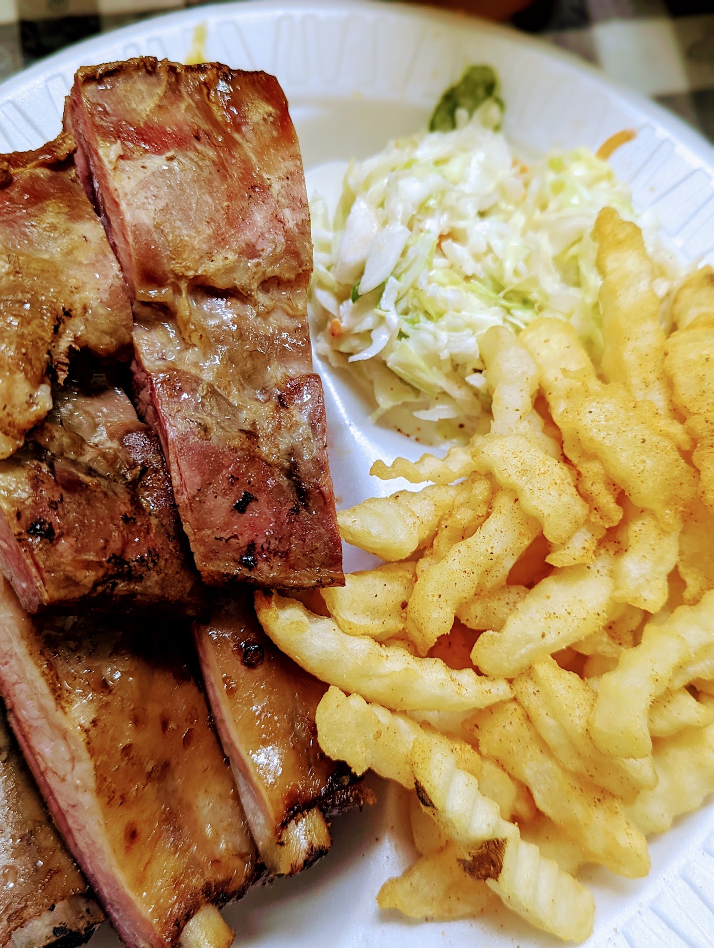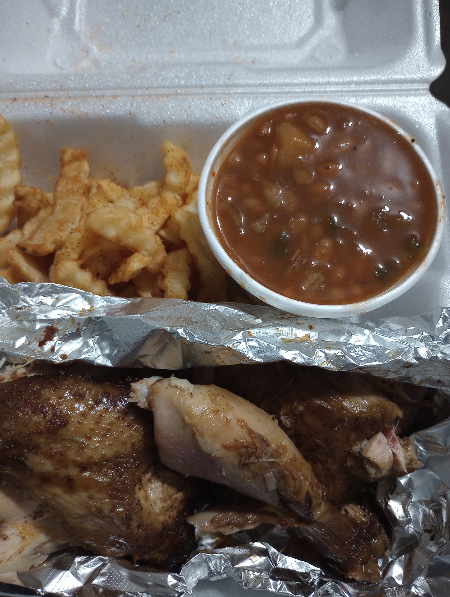 Read moreFirst time experience ordering and eating at Gators BBQ. When you walk in there is a small dining area for you to eat and signs for you to order and pick up. I felt very rushed after I called in my order and arrived. I saw the cakes and wanted to add the cake to my order(which was done with no problem) but it also caused my potato salad to not get rung up. I was asked what sauce I wanted but no indication of the sauces available so I just said a mix. The food was good and had certain items that stood out. On the chicken dinner you get two sides. I ordered baked beans and fries. The fries were good. Can't wait to try the loaded fries. The baked beans were ok. They were not nasty at all and also were not over the top but edible. My next dinner was the rib dinner. I chose to get the thick ribs with Mac n cheese and collard greens. The Mac n cheese was standard and cheesy. The greens were heavily seasoned with a pepper taste. Not sure if it was pepper sauce or black pepper but too heavy. The sauces were a sweet one, one similar to Carolina gold, one similar to regular BBQ sauce, and one that was trash that was very liquid and tasted like vinaigrette with a Worcestershire sauce? The cakes were phenomenal!!! Definitely not sharable. With my overall visit, I...