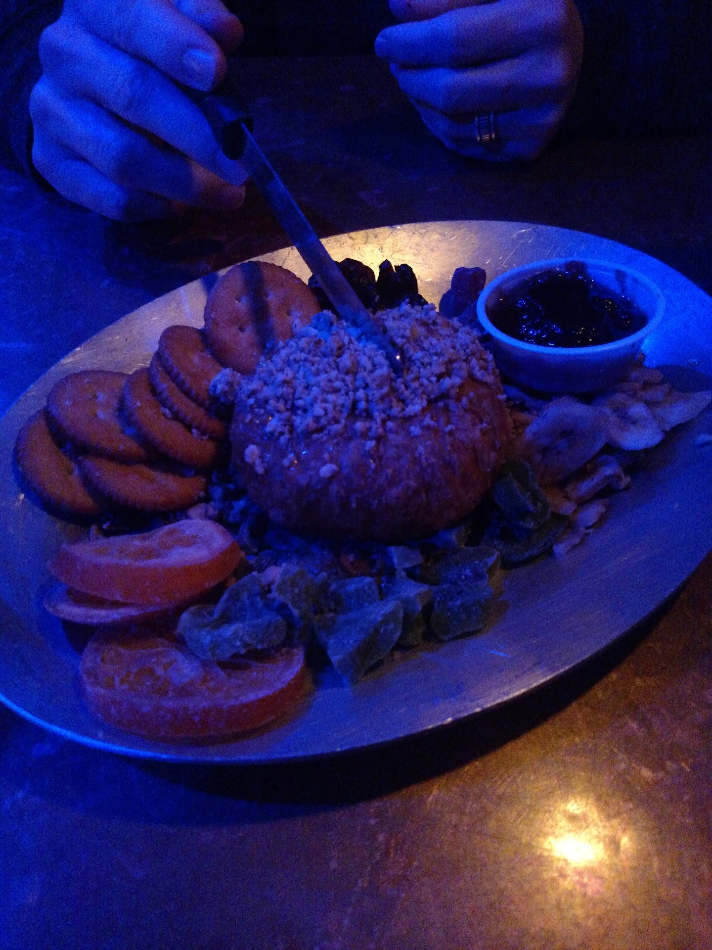 The atmosphere is so eclectic and mesmerizing. I found myself just staring at the walls. The food was great and our server, Sean (Dude, I hope I spelled your name right), was extremely friendly and attentive. We started with the Puffed Pastry Brie app and oh my stars! It was āscrumptulescentā! Delicious warm brie served with Ritz crackers, strawberry jam and candied fruit. Iām not just talking raisins and cranberries (though some of the latter were present). Candied strawberries, oranges and KIWI! WHAT!
