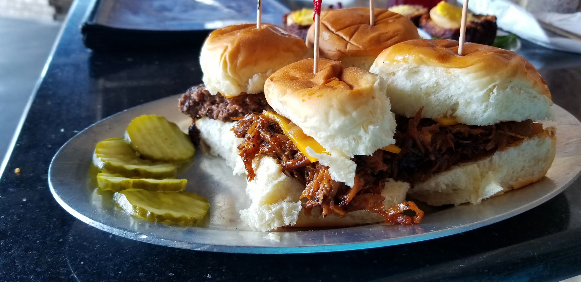 Ā Ā Ā Read moreI had high hopes for this place and they did not disappoint. The atmosphere is so cool, whether you're eating inside or outside. All of the staff were so friendly and fun! I sat within earshot of the hostess and enjoyed hearing these staff having fun with one another and with what seemed like 'regular' customers, seems like you're part of the family if you ever return. š I didn't have a huge appetite to start with, and that almost made the decisions more difficult as every item on the menu was so delectably described. I chose to sample a snack plate (sliders) and am appetizer (scotch eggs). The sliders had varying meat options, the waitress and kitchen hooked me up and let me split the 4 sliders into 2 with pulled pork and 2 with beef. I think I was halfway into the second slider when my waitress asked if I needed anything to go with them (ketchup, mustard, etc.) And with a mouthful of joy I responded that they were awesome just the way they came out. I had never had scotch eggs before and had been wanting to try them, if you've never tried them, I fully recommend them. These being the first I'd ever tried, but again having a somewhat high expectation of the dish - I was very pleased with my decision to try them. Nothing was "greasy", everything was balanced - both on my palate and to my taste buddies. š The menu carries enough variety that everyone in your party should be able to find something suitable to their dinning desires - no matter what you're "in the mood for" (for the most part). I didn't sample any adult beverages on this trip, but the seemingly endless list of choices should fill anyone's cup of tea, or beer, or whatever. If you've been wanting to check this place out - do it. If you're looking for someplace new - look no further. Check them out. And don't thank me... just tip your...