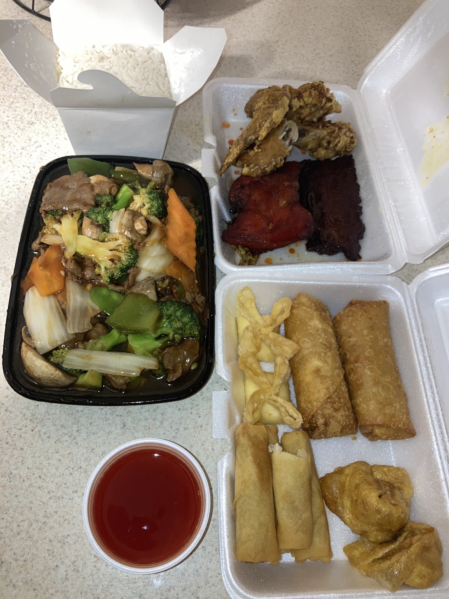 Read moreOrdered Sweet and Sour Chicken Tonight. Got it home, outside looked good. Chicken on the inside was dry & looked previously cooked, hard outside corners. Called to ask for a replacement or refund. Was told only 5.00 off because she saw the food & it was good color. HELLO YOU DID NOT SEE THE INSIDE. She refused until I mentioned the health dept & BBB. After saying she would give me $10 back, I was not allowed to order from there after getting a refund. Then proceeds to tell me I have had multiple no pickups. NEVER have I not picked up an order. From anywhere. This place is shady & food is questionable. Why does it look like this was leftover pan seared left over chicken? No gloves, they move from register to food. Never see anyone wash hands. Just gross. Which is why I rarely order anymore from there. Last resort dinner usually. Find a better...