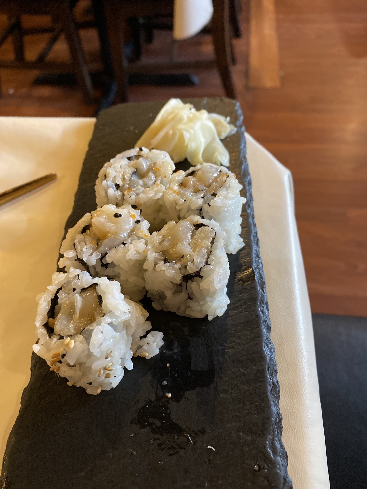 Made a reservation here based on the higher rated reviews. Walking in we had to duck under a piece of fabric covering the top of the door. We werenât asked about the reservation- so if you plan to go, donât worry about that. We were seated promptly, but that was about the only thing prompt. The decor was nice and staff for the most part friendly. My husband and I ordered two rolls. The table behind us ordered (after our order was placed) the largest boat of sushi Iâve ever seen which led us to wait close to an hour for our food. We watched the chefs prepare the sushi & place them for server pick up. I canât tell you how many of them looked at the food & left it there to go take another order! Sushi is never supposed to be left sitting for any length of time! We had to ask for them to check on our order, when finally brought out, no apologies for the delay. When the bill was dropped on the table, no gratitude from the staff. Pretty disappointed & donât...