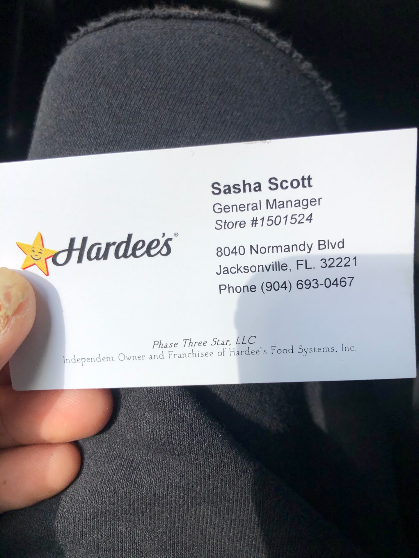 After working a double shift totalling 17hrs I was hungry and wanted some great tasting breakfast food. I choose HARDEES because they were my very first employer back in my hometown of Ohio; Now I've relocated to The Sunshine state of Florida and their HARDEES is THEE BEST EVER. The parking lot is huge plus clean with lovely trees and landscape overall, the staff is very patient, kind, courteous, team players, have humour within their interactions with all, and on top of everything!!! Their public restrooms were even CLEAN! That is always a great sign that their food is going to be DELICIOUS and guess what, THEIR FOOD WAS DELICIOUS! I ordered $48.94 worth of quality food and MyFiance and Myself enjoyed everything! Our HARDEES location and kudos goes out to restaurant #1501524 at 8040 Normandy Blvd Jacksonville FL 322221. The cashier had great customer service and was very patient with me and informed me of menu items plus options on HARDEES specials. The cook line kept delicious food coming by tackling incoming orders and keeping the food in good quality, drive through employees completed their orders promptly, and the morning manager was working hard just like his entire crew. I am extremely satisfied with my service and food, I will only eat at their great HARDEES location because they are AWESOME! Everyone needs to experience their quality service on behalf of HARDEES here with this restaurant location. It will be well worth your...