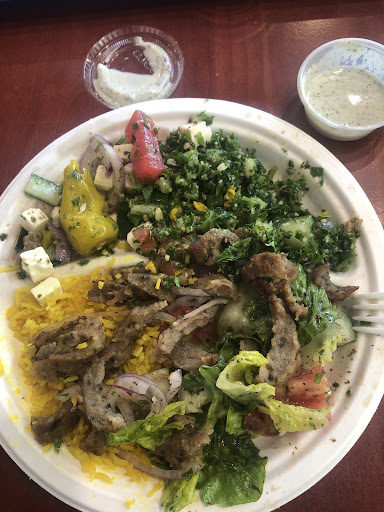 Read moreThis is the first time that I've eaten here before so I really didn't know what to expect. The food is mostly authentic with the exception of some items. This may be done to provide faster service so you're not having to wait for a cook to prepare your meal. The vegan gyro was good and I can say they did try to get the tofu to taste as close to the original gyro meat as possible. I did not care for the chopped kale salad as it wasn't seasoned and could have been to cut down that strong kale taste. The falafel gyro was tasty as well but the dressing that came with it was a no for me. It would have been nice if they made a vegan tzitzit sauce which would have paired nicely with the falafel gyro. The humus and pit was very tasty and well seasoned, even my husband who doesn't eat humus liked it. My 2 yr loved it as well. My husband enjoyed the classic gyro and liked the potato salad and chicken salad. My teenager enjoyed the pasta salad and his chicken wrap. All in all if you're looking for a quick bite to eat and it's Mediterranean you're craving this would be a decent place. The food is already prepared and you just have to let the server know what you want. If you're looking for a true Mediterranean experience with hot temperature food where you are waiting for it to be prepared this is...