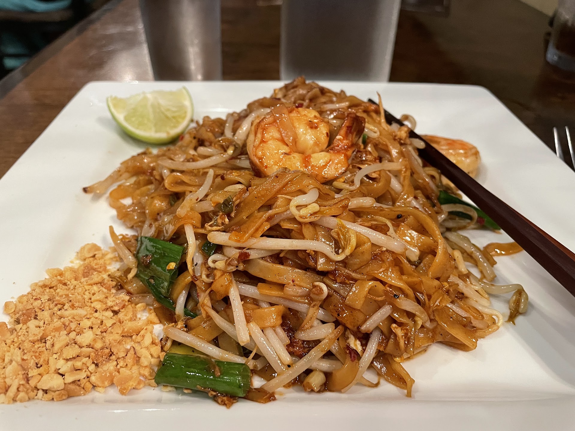 Read moreI ordered pick-up first time customer, husband went in to get it, he said it was really nice inside and the hostess was nice. Buttttttt, all the food is soooo bland! I LOVE red curry and rarely complain about food I promise! And it’s funny because curry is really hard to mess up lol, but I swear they did it! Theirs tastes like they used a drop of curry and the same for the coconut milk and watered it all down severely. I have store bought red curry paste in my fridge, I added like two big spoonfuls to half of the container me and my man shared, that’s how bland it was and that stuff isn't great either or I wouldn’t of spent the money and made it myself .. lol anyway I do have to say that the chicken itself and the vegetables do seem pretty fresh and cooked decent even though it was just boiled, but again other than that, it was not amazing like it usually is for me. And I know I only ordered a spicy level 2, but every single othertime I get Thai food anywhere else a 2 is SPICY! Put it this way my 5 year old ate the food and HATES spicy! And it sucks cause me and my husband were so looking forward to it, barely order take out, spent almost $50 and it’s just sad food…. We did get the pad thai too, that wasn’t too bad I suppose. Nothing special not much seasoning either. And again the chicken did seem fresh, but cooked almost in a cheap Chinese take-out kind of way, not like the traditional dishes I usually get. We also got the Tom-Kha gai soup and that was pretty good thankfully. Tbh, I usually get Tom-yum, never had this one so I’m not familiar on how it’s supposed to taste ironically the one thing I liked out of all of it. I read a lot of reviews after I tried this food and saw a lot of people in the last few months have had terrible service there, bad food, missing all the seafood and things in dishes, hair and more! Very rude service to customers I hope that’s not true. If it is then get it together your located right in the middle of downtown you’ll be closed down soon if that’s the case and you got terrible food on top of it! There are new owners apparently from what I read. I wish I read more before ordering, was hungry and it was the closest to my house. Lesson learned. I’ll drive the extra 10/20 mins or pay delivery...