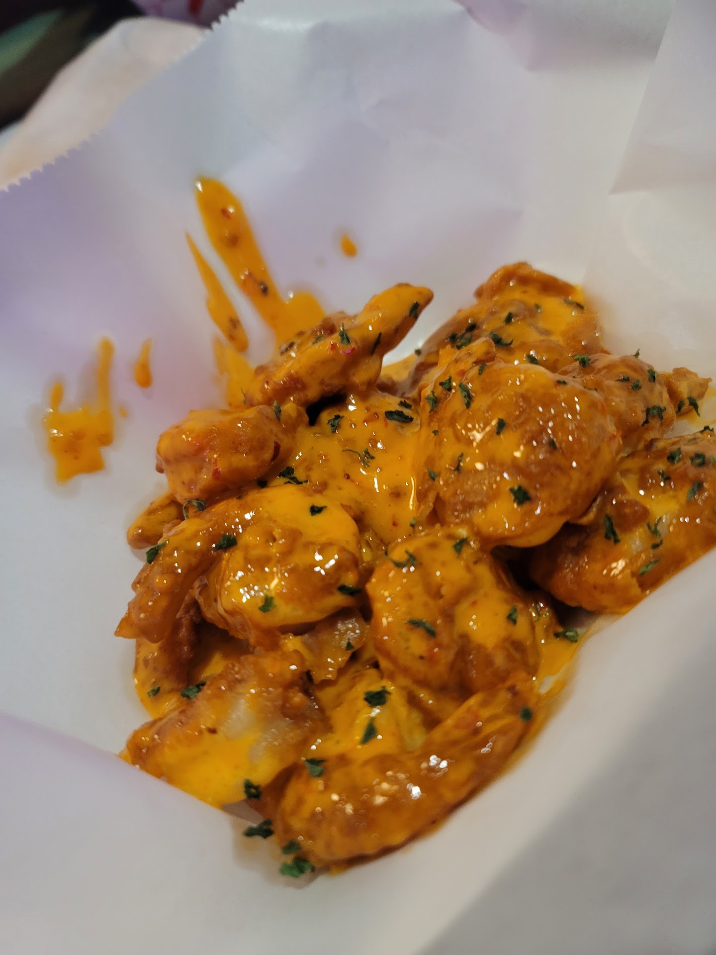 So let me just state up front that I completely forgot to take pictures of the majority of my food. When I arrived I was starving. I hadn't eaten all day (unintentionally), so I wasn't even thinking about photos until much later. I did manage to get one photo of my Breezy Shrimp. They were delicious. If you need a reference, think Bang Bang Shrimp, but it's slightly different.