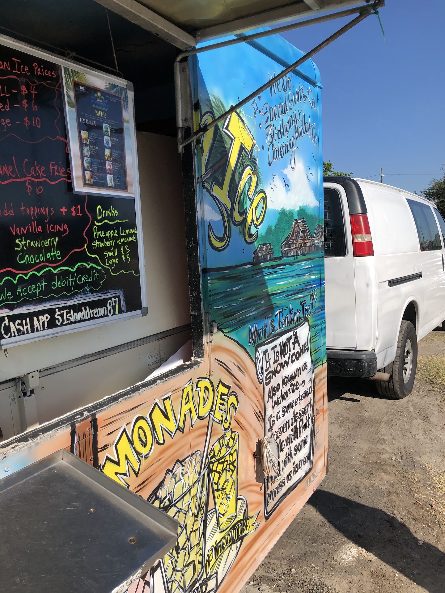 Read moreIsland Dream Food Truck is a gem for delicious Italian Ice. Iâve seen posts on IG with pictures of the yummy cool treats, so I decided to take my nieces for a treat. The truck was easy to located thanks to IG. I believe the truck moves to different locations throughout the week. This particular time the truck was located on Lem Turner.