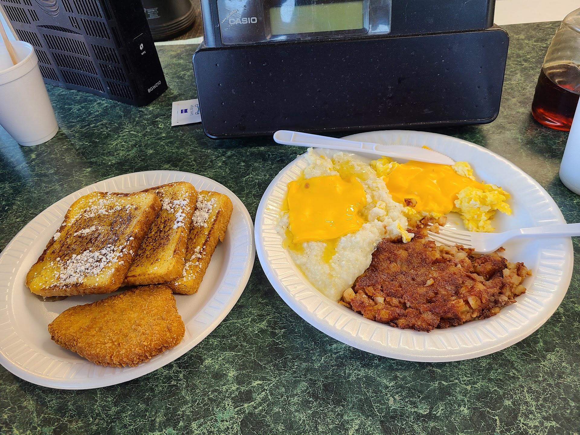 Read moreI had a chance to eat breakfast this morning at Jack's! I ordered so much since this was my first visit. I ordered cornbeef hash, eggs, grits, French toast and also tried the salmon croquettes. Of course this was too much food, I did end up taking the rest home. My food was great. The owner was there and greeted everyone when they came in and when they left. The cook was amazing. She whipped that food out left and right. All food was fresh cooked. The lady that took my order was very patient as I couldn't make up my mind. I wanted to try everything. Needless to say, I definitely will return. Thanks for a...