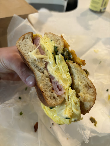 Read moreSelected this spot for breakfast because it was a bakery and not a national breakfast chain. Glad we did. The ham, egg, and cheese bagel on the jalapeno cheddar was good. Spice level on point, eggs were fluffy and overflowing over the edges, and a good amount of ham as well. It also has the house made truffle oil which took the sandwich to another level. Im still salivating after finishing the bagel 🤌🏻 My wife got the Lox bagel also on jalapeno cheddar bagel and flavor was great. Loaded up as well in similar fashion and plenty of food for the money. A few people have complained about the service being slow, but they make everything from scratch in the back and so it takes time to cook and assemble. If you just have patience it is well worth the tiny bit of wait. The staff was super friendly and welcoming and we can’t wait to be back to try more items including their home made African sweet bread! So happy we found this!
