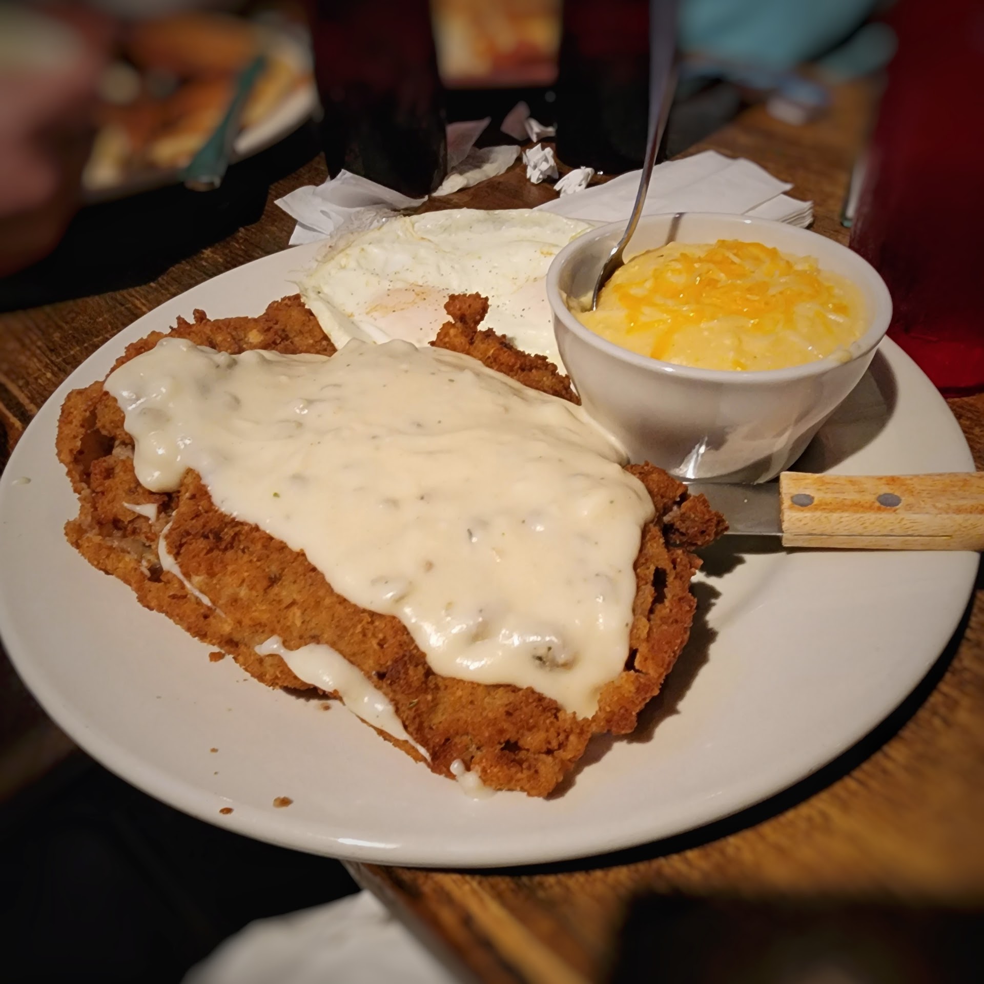 Read moreWent there last year during football season, food order was late coming out and wrong, never sent food back before ever but it was not even close. Was there watching a football game so we could wait. And we did. Over an hour. The waitress forgot to pick up the food, and it was cold. Were too starved at this point to send it back. Then wanted to order dessert, but couldn't get the waitress's attention to even bring us the bill. We had to go pay up at the bar. I've NEVER complained about service before, but went to the manager. As we were speaking to him, the waitress screamed across the restaurant at us! We got a gift card for $20 to come back. Fast forward a YEAR. We go tonight. Order food. Order comes out wrong, I ordered sweet potato fries. No biggie, but on the bill, I got charged $4 for an 'extra' order of fries. Got that rectified. Asked 3 times for a 'to go' cup for my lady's tea. Burger was LOW quality meat and undercooked severely. Buffalo wrap was just DRIPPING out the sides with hot sauce. It was supposed to be buffalo, not a chicken wrap with hot sauce poured in after it was cooked!