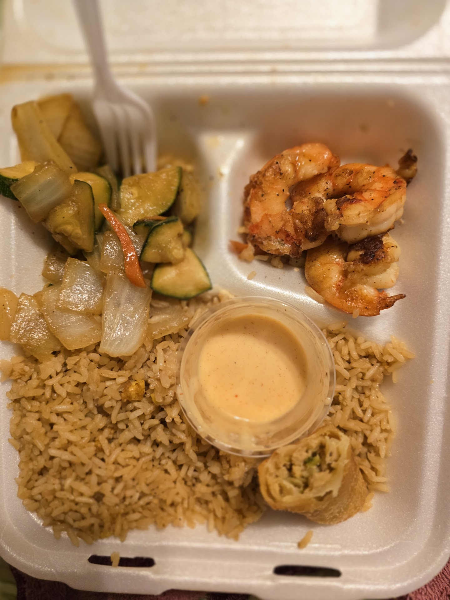 Read moreFood was delicious, they were accommodating and made my meal with double vegetables and no rice upon request. My boyfriend liked the rice though! Steak, chicken, and shrimp were all fresh tasting and flavorful. Portions were very large! When I went to pick up the food, they did two steak and shrimp hibachis and I mentioned that I probably misspoke when ordering as I wanted one steak and shrimp, one steak and chicken. I admitted it was probably my fault and my boyfriend would eat the shrimp anyway so no need to fix it, but they insisted and made the food super fast! Prices were really fair.