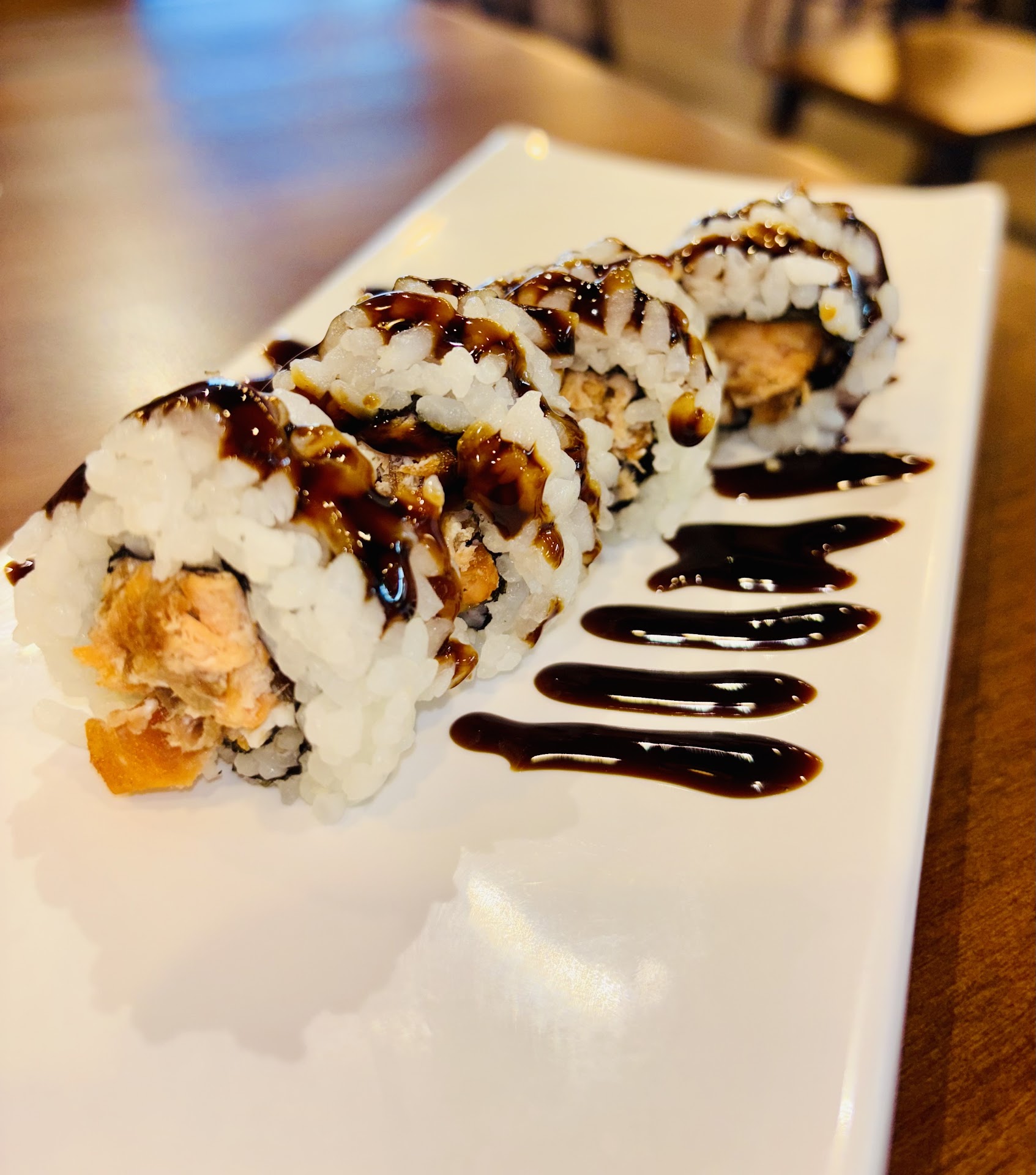 I went here with my wife and two others for Mother’s Day for the all you can eat sushi. The menu for the AYCE is pretty limited given the $40 per person price tag. The menu is also VERY cream cheese heavy. Nearly every item is doused in cream cheese or filled with it. If it’s not cream cheese, it’s mayo or a thick overly sweet eel sauce on everything. I’m a fan of unique rolls, but guava jelly on it makes no sense. Random leaves of arugula make no sense. Some will differ on their “odd rules,” but the only unique rolls they had were terrible. There are also some truly random items that seem South American or Hispanic inspired. If done well, I’d understand it but it was mostly just thrown in there (though the ceviche was probably the best thing we ate)