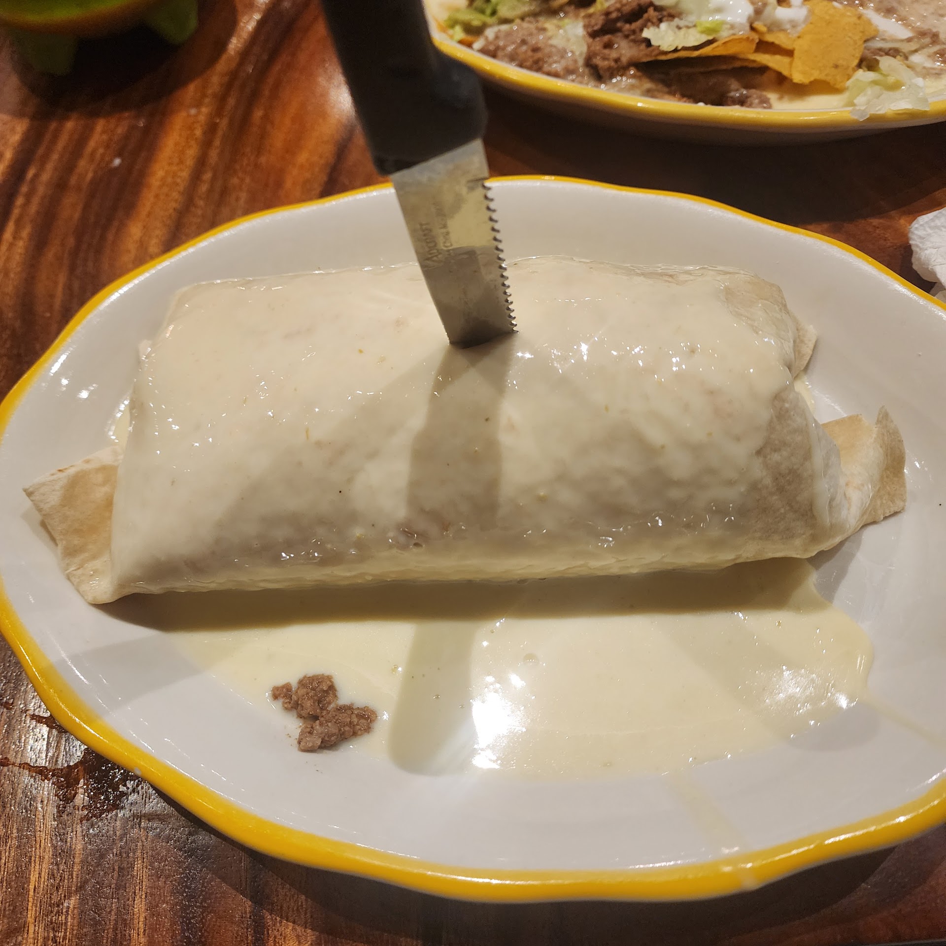 Read moreLooking for Hispanic food and came across this place. Oddly configured building. Back of place faces main road with heavily tinted windows. Place was spacious with large rustic dining area and small bar. Our server was extremely nice but lacked professionalism. We were served chips and salsa within minutes of being seated. The chips were thick and the salsa homemade with just a little to much cilantro for my taste. We ordered the beef nachos supremo for an appetizer. It was a mess in no time. The ground beef mixed with beans and sour cream turned it into soup. We used the rest of our initial chips to eat nachos. Ordered the fajita burrito while another the combo enchilada plate. Service took a nosedive after order was placed. He spent most of our time seated at table near entrance rolling silverware or on his phone. It wasn't until we were nearly finished that he checked on us. Back to main course - the burrito was covered in white cheese. The well seasoned filling was good but pieces of steak were chewy. The enchiladas were tasty with the chicken being the best of the four. Would definitely give it another go and adjust order...