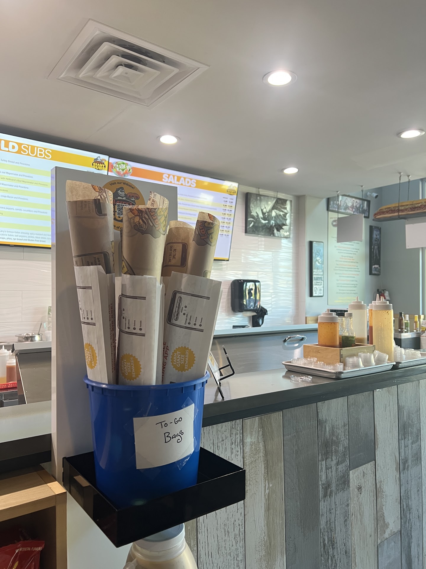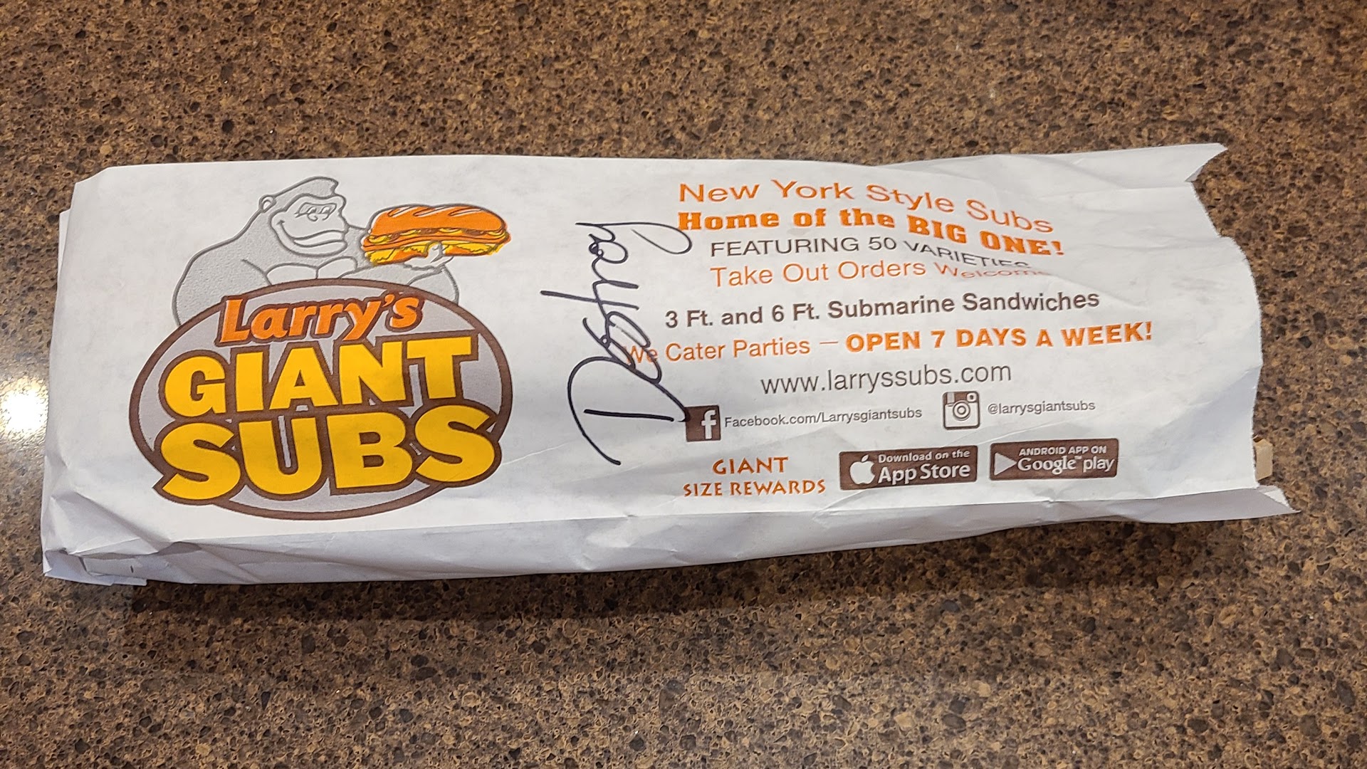 Larry’s is our sub restaurant of choice. We have had good luck with this location. We went for a weekday lunch. Parking there can be dicey; beware the giant crater at the lot entrance. This is one of those skinny locations where you constantly have patrons walking by since the ordering register, as well as the drink and condiment station, is toward the rear. Lousy layout, Larry. Our counter cashier was very pleasant and efficient and spoke up enough so you could hear her over the noisy dining room. Our subs were good and substantial and made exactly right. My only quibble with the subs is I prefer the meat to be folded and from end to end, not laid on flat. It is a scientific fact that folded meat on a sub tastes better than flat meat. Br that as it may, we will return to this...