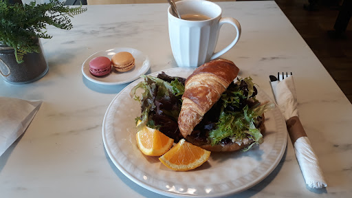 Read moreI am impressed. I like the atmosphere, how it gives you a feel for Paris, but it doesn't overdo the antique look popular in most French Cafes. There are beautiful touches to make it more welcoming, amongst the leftover seating, style and colors from the previous owners. The crossiant was perfect, flaky and with a crisp outer layer and rich inner layers. The chicken salad was superb, delicate and flavorful, with clearly fresh ingredients. I loved the dressing on the greens, I hope it was made here! The macarons have a nice flavor, though the texture of the cookie was a bit stiff. I love macarons, but most places don't keep them stored properly so they become stale by the end of the day, which I fear would be the case here if you ordered one in the evening. Maybe store the stock in an airtight container, and just display a few to showcase the flavors? I enjoyed my Americano, it was a bit acidic, similar to Bold Bean coffee, but easier to drink than that. I also ordered a Pain au Chocolat to go, the flavors were excellent, the layers light, airy and crispy. I hope they are able to keep up the quality, for this is going on my list of recommendations for people in Mandarin! Overall a lovely experience, and I look forward to coming back and trying more...