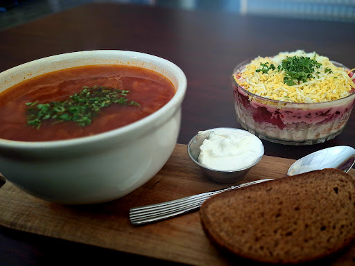 Read moreSuch a cozy and welcoming atmosphere with incredibly fresh and delicious food! We stopped by with our family for lunch while traveling from Texas and were so glad we did. We ordered borscht, shuba salad, and holiday potato salad - everything tasted homemade and full of flavor. After the meal, we enjoyed herbal tea and the classic “nuts” dessert - absolutely delightful! We’ll definitely come back if we’re ever in the area again. Thank you for the warm...