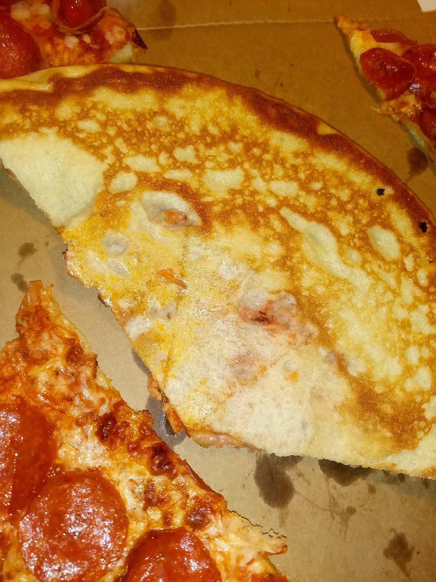 The pepperoni was exactly what I expected. We understand that this is a place you can get a food for $5 that feeds multiple people, but with the bar appropriately lowered to "acceptably edible" 2 out of 3...