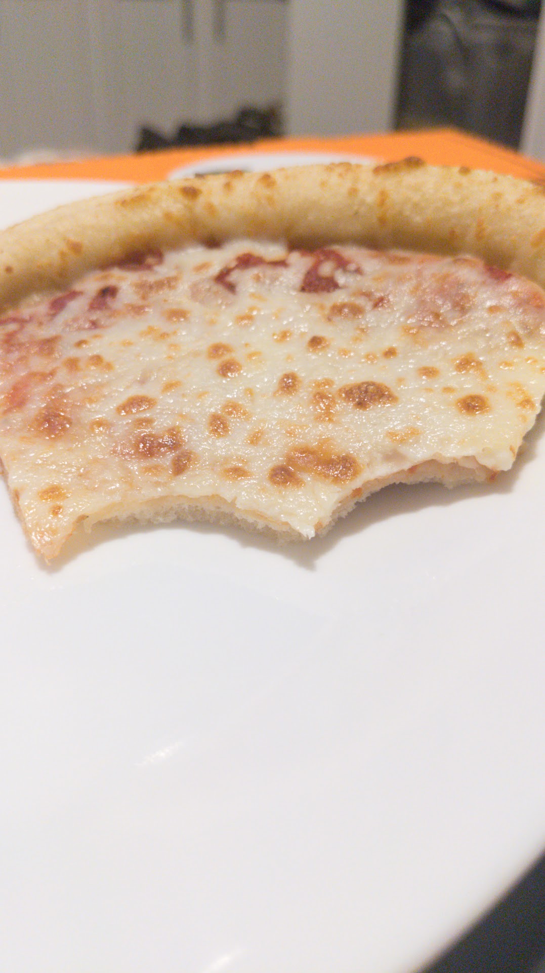 The pizza I just bought tonight is basically just dough and cheese. No sauce hardly on the pie anywhere. And I know it was not a brand new pizza. I ordered it across the parking lot because I had to go to another establishment. By the time I got there and went inside it was less than 5 minutes and my order was already done. On the app it said it would be done in 15-20 minutes. That's how I know it was not a newly cooked pizza. See image.