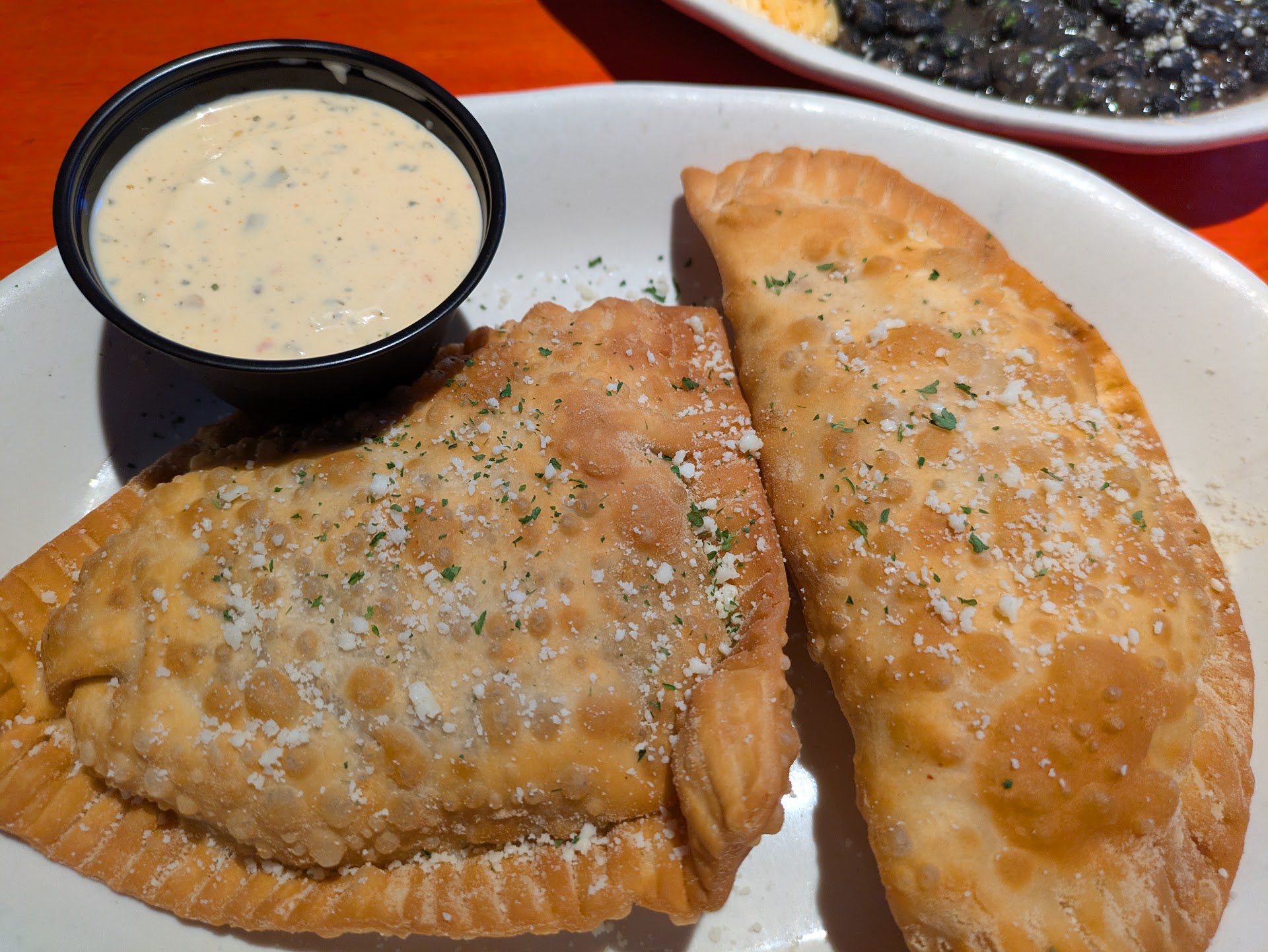 The place wasn't too busy since I hit it just before dinner time. Summere took excellent care of me and was very sweet and friendly. I wasn't sure if I wanted the enchiladas or empanadas, but she advised me that the empanadas were her absolute favorite. So empanadas it was! I then had to decide between several different kind and they all sounded delicious! I settled on the Latin beef and the chicken curry even though I wasn't sure about curry in an empanada. For sauces, I went with Summere's suggestion of the jalapeno ranch after she advised it wasn't too spicy.