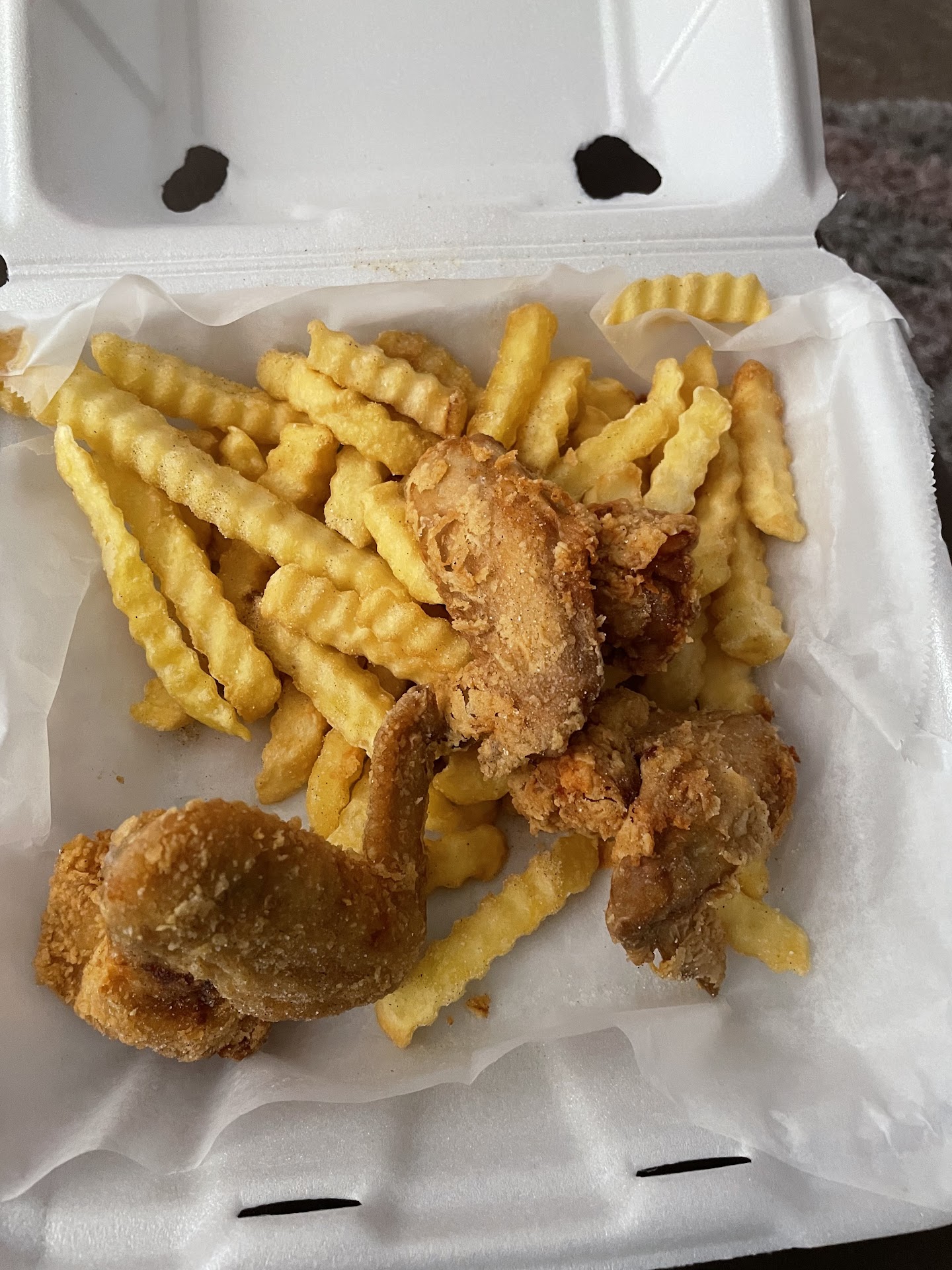 Read moreIm shocked … CHECK YOUR FOOD BEFORE YOU LEAVE … I went to the restaurant orders a kids meal wing with EXTRA EXTRA SEASONING and this what I got every one know the seasoning makes the food good lol… so I call soon as I opened my food the man who always works told me no worries he remember who I was in the white Chrysler when I come back he will replace it. I go back he not there the owner is there and I told him what happened and he says that does not make sense why would I give you another order because you have no seasoning I stated because I asked for extra and I wasn’t able to eat the chicken plain and I was told I would! The owner says there’s no logic to it and I’m not giving you another kids chicken… so I decided not to get my food I order plus the food I should have got replaced it’s not even full as normal… I haven’t been in a month and I use to eat here once a week but I’ll take my business somewhere else. First time I experienced this with them…and the fries weren’t fresh at all I only...