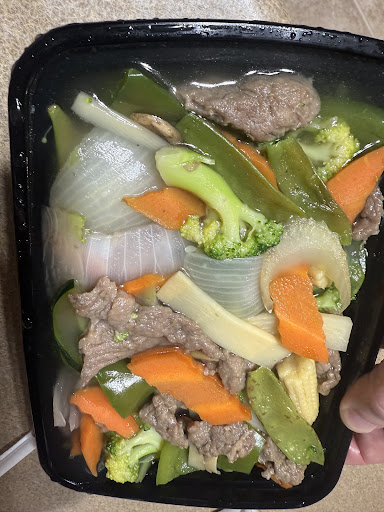 He likes that type of food. Then some diced Chicken, & some other kind of meat at the hibachi.