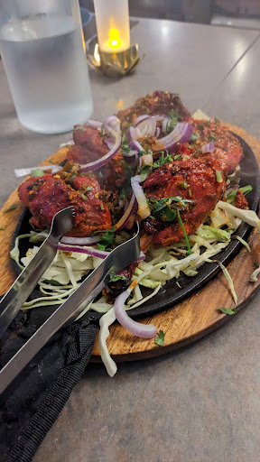 Food and portion sizes: the food was prepared in a reasonable time span and, oh my goodness, SO FRESH. Everything hot we ordered came out piping hot, fresh, and the presentations were so beautiful and colorful. Not to mention the aromas of the spices and herbs used were a lovely addition to what we ordered. Our meals came out on clean plates/bowls/skillets. Care was given by warning us when something would be too hot to touch or hot on the inside. The portion sizes aren't overwhelming, and definitely not underwhelming. Our appetizer, meals (I had a curry medley in Tikka Masala, my husband got a sampler from the front of the menu) were generous enough to make us full and have a little left over to enjoy for later. Everything still held quality the next day. I enjoyed what I had so much that I have already found my "Go to meal" on my first visit! If you get a curry, definitely add the Paneer, it is a delightful addition to the curry. Everything was authentic in flavor and cuisine, and nothing is "watered down". The owners take pride in their food and it shows.