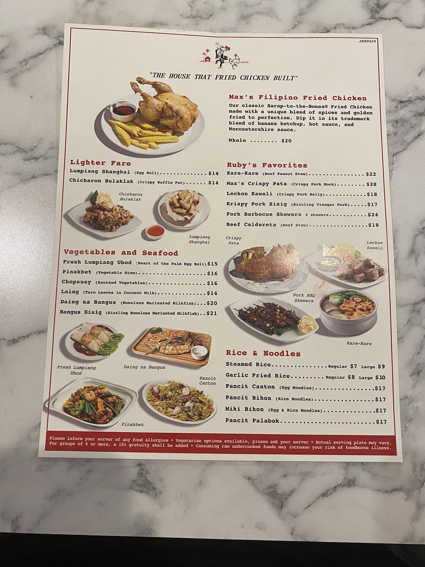 There is certainly a lot of room for improvement at the Jacksonville location. I believe that if you’re going to open a restaurant under such a reputable brand like Max’s, it’s crucial that the kitchen is managed by someone who truly understands Filipino cuisine and can deliver dishes that not only taste great but are also served promptly...