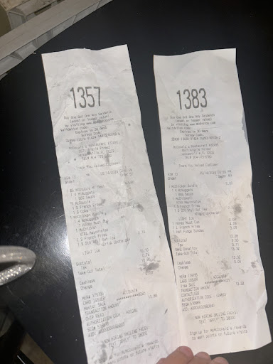 i just placed an order thru the drive thru, for my grandma and i since she wanted some and i was also hungry. i got there and asked for 2 $5 meals. paid, got the food came home. it was pouring rain outside and i got home and there was a missing mcdouble from one of the $5 meals. so i called the mcdonaldâs and told them i just got home up which takes usually 5-10 min but since it was pouring and there was traffic it was about 20 minutes ago and i was missing the mcdouble. i paused and waited for a response for a slight second and there was none i then asked if i could, may i come back up there with the receipt and receive the missing item.â they said âyes.â i was already getting a little frustrated cause it was pouring rain and i just got home and the fact i couldnât eat my food cause my grandma wasnât eating. my food would get cold so i just gave my meal to a house mate and was like hopefully i can just get a whole new $5 meal if not ill buy one but i hope that wasnât the case. i got there and and told them through the speaker box the situation she was like okay then i said i wanted to add another $5 meal since the other one wouldâve been yk cold .. i donât like confrontations especially when itâs work cause i worked in good for years and i understand how it could be. anyways she added the $5 meal and another fry but a large i even rounded up to roanald mcdonaldâs house which isnât he issue but like... anyways so a new order was set and i pulled to the next window. before i paid for the meal i was just frustrated im trying to save money and i just went for my grandma mainly now i got to the window she said an order and i said no thatâs not mine. she asked what i had and i was saying it fast because it was poring so bad i had a microfiber towel in my car just because and i was holding it mid air of my window cause rain water was just pouring in my car meanwhile she was still trying to confirm after i had told her âi have my receipt and i called and had a missing sandwich that you all said i can come back and grab and i ordered more food because mine was gonnna be cold at this point. she apologized briefly and said she didnât know she wasnât the one that took my order, and she was âŚby this time my whole left side of my body is soaked in rain water along with the inside of my car. i go to the next window surely assuming she would know i had the âmissingâ mcdouble i paid for previously and the additional add ons were for the same order. she opened the second window and said did i have the five dollar meal with a coke. i said yes but no i had a five dollar meal with a sweet tea light ice.. she said sorry thats what i meant. i said no biggie. she gave me the food and the drink along with the add ons. she said have a good day for the second time now and closed the window. i checked the bag and it was missing the mcdouble. i had to wait with my window open untill she came back and i told her i have a receipt i had a mcdouble i ordered previously and before i could finish talking she was closing the window smiling because i guess she forgot again and went to grab it. THEN i go home to eat my food and bring my grandma her meal cause all she ate was the fries and 4 nuggets while i went to get the mcdouble and i go to eat and my fries in my $5 meal looked pale and soggy like they werenât finished cooking. i tried to eat it cause im hungry and just angry at this point and it was no good. it was mushy. usually my service is good and i come here all the time really but today just made me so...