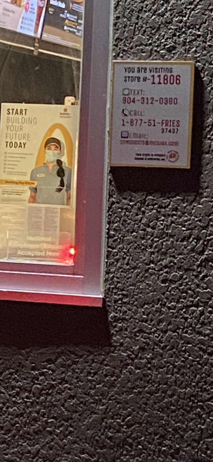 NO LOITERING POLICY- DO NOT COME TO THIS MCDONALDS IF YOU PLAN TO SIT AROUND OR HAND out for an extended time. I have seen multiple guests suddenly kicked out and asked to leave after 10 minutes. The owner of this location is very nasty. There are also flowers on all the tables and not clean or anything and if you have allergies, you could be at risk. Some germs have built up in the flower containers as they just sit and never watered or clean. The seating is also very hard and small and can be difficult or insufficient for larger guests