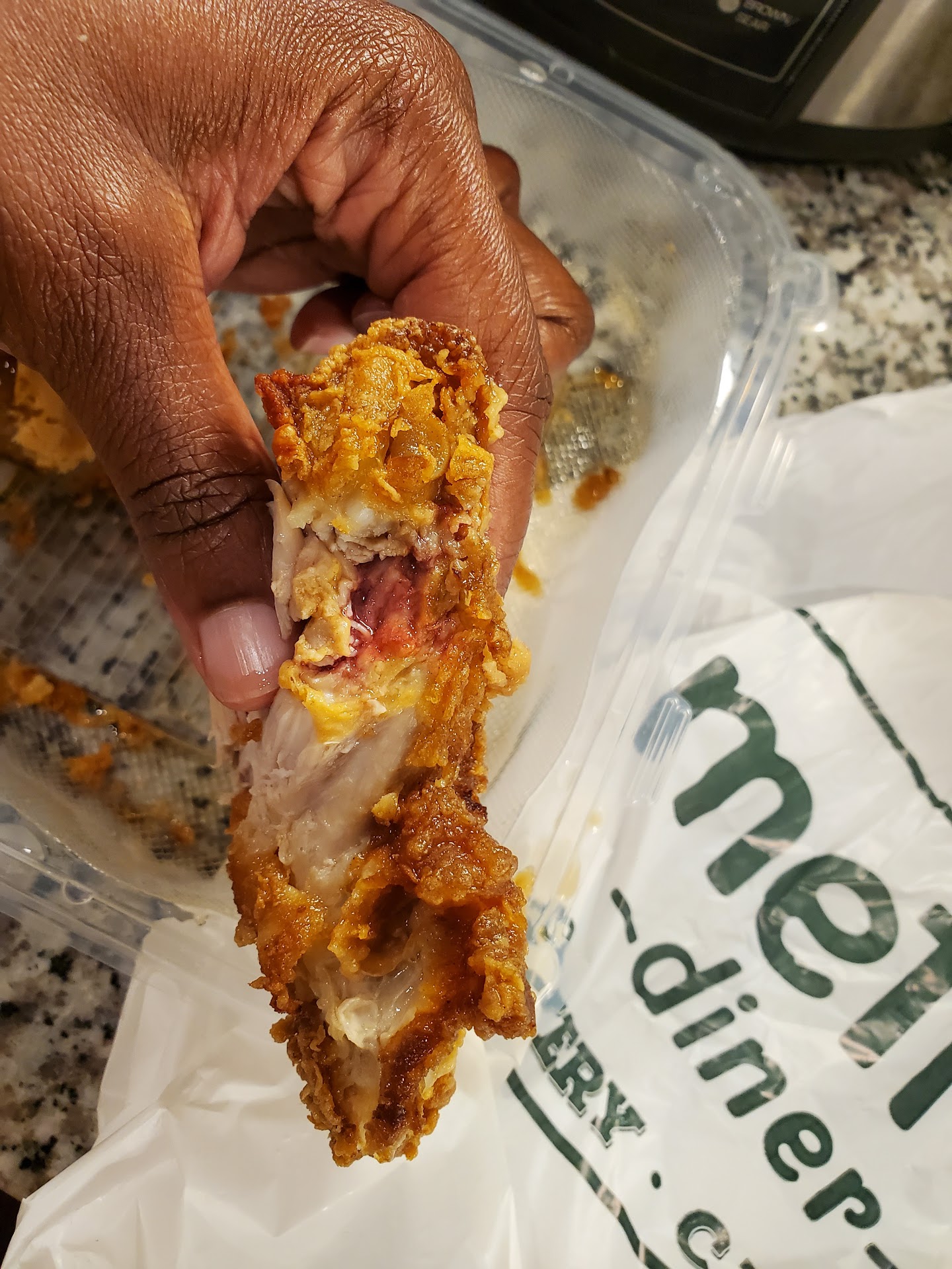 Read moreOrdered dark meat chicken and waffles on uber eats at work today. I love metro diner so I am not trying to bash in any way. Just want to bring this to the staffs attention when making orders hastily. I ate half of the waffles and the 2 legs. They legs were good, seasoned, and still crunchy after delivery. But they were not cooked all the way through on the inside so I ended up throwing them away. I didnt take pics or call to complain because I had no time for that. I took the other half home to eat and after reheating in the air fryer, i took a bite and boomđ„ blood. Chicken not fully cooked. Thats 3 pieces not cooked. The 4th piece I gave away so idek if it was fully cooked or not. Please ensure that the food is fully cooked as this is disgusting and a waste of my money. This was ordered from the Southside location and their food did taste different from my regular location on Baymeadows. This time around I was highly disappointed. Please fully cook the chicken.