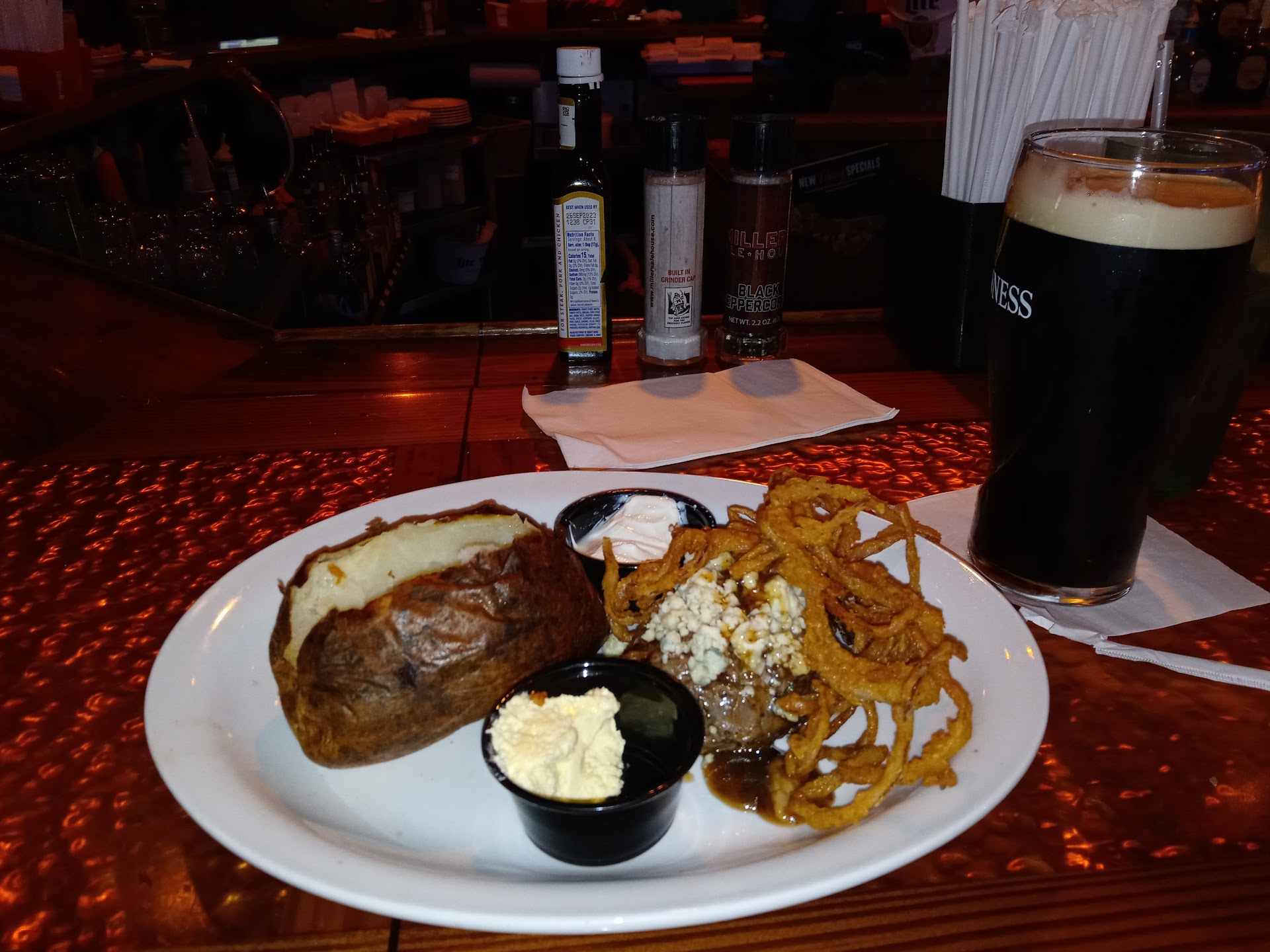Read moreMy buddy took the girls and I out for Christmas dinner, and like you'd expect pretty much everybody was closed. Well you can always rely on a few Asian joints to be open, or a tried and true sports bar, nothing stops Monday night football not even Christmas.. haha... anyways Miller's Ale House had our back, when your hungry your hungry. I've been here a few times and this particular location is my favorite, great food, great craft draft selection, good service, yup even on Christmas night. We had Ribeye with baked potato, prime rib burger with baked potato, girls split a mahi mahi Sammy, and a poblano burger and we all got salads. For the table some fried calamari, ate it to quick to snap a pic, and some crab legs..the homie said the ribeye was slapping, and perfectly cooked medium rare, prime rib burger was delicious, and the girls really liked their sandwiches.. especially the mahi mahi..the calamari was excellent, tho it could have used more dipping sauce, and the crab legs were o.k. but nothing to write home about..the girls were happy to try crab legs tho, for being seafood fans crab legs have always seemed to elude them. We had a great time, first time my buddy had tried them out. It's a great place to watch a game or fight, and you can smoke and vape on the barside/outter porch..solid choice.