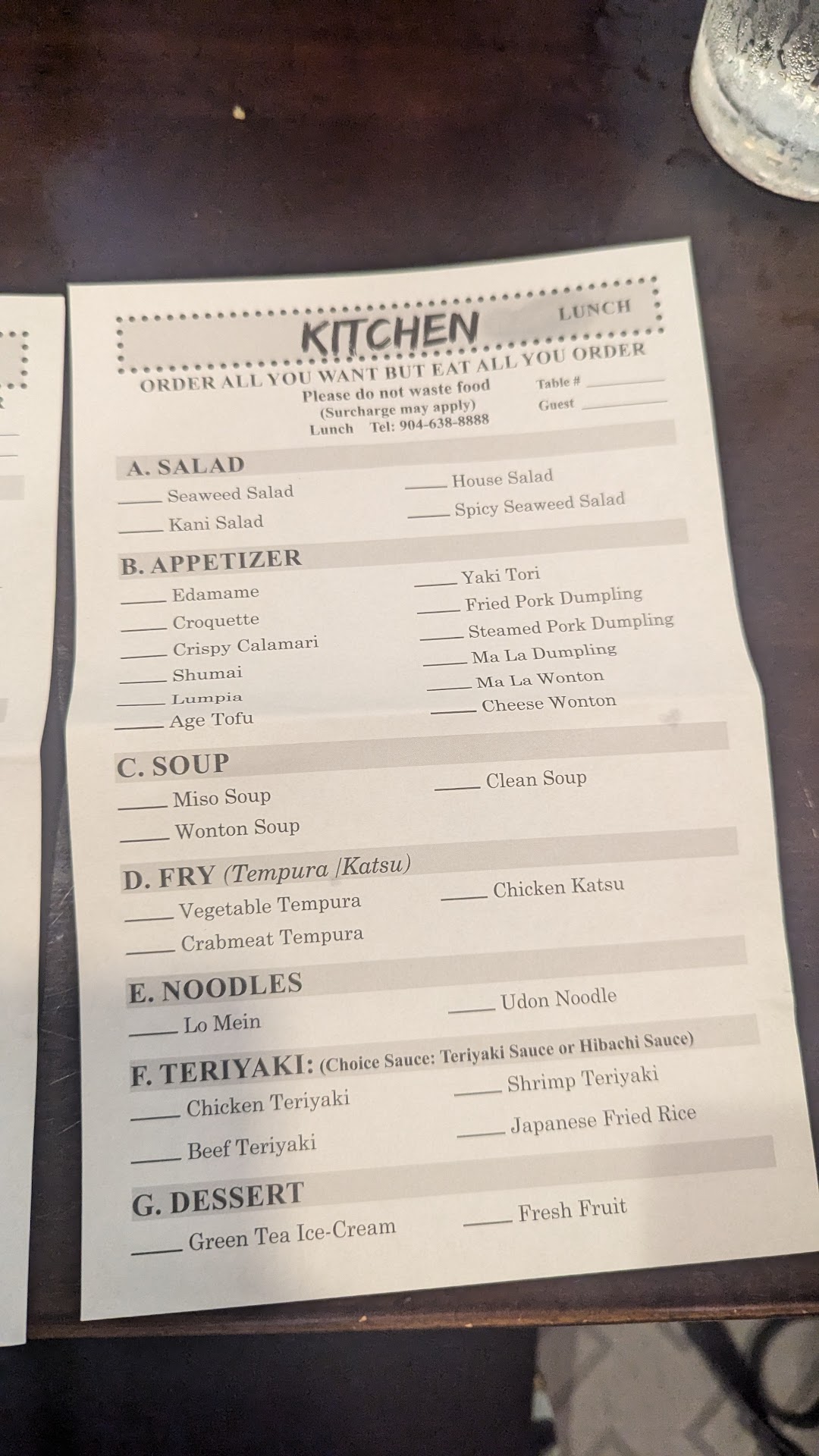 Read moreHighly recommended. Our very first visit and we really enjoyed the food. I was expecting a buffet since it is all you can eat but they serve you at the table. The menu is confusing to say the least. It is presented as two sheets of paper: one for sushi and sashimi with the other for kitchen orders. The orders are written on the paper and the waitress collects them. Nothing on the menu shows the price but both sheets of paper say it is all you can eat but don't waste food. I wish I took a picture of it because it was worded in an intimidating way. My wife and I read both menus and were worried about ordering too much. By the way, the price is $18.99 per person.