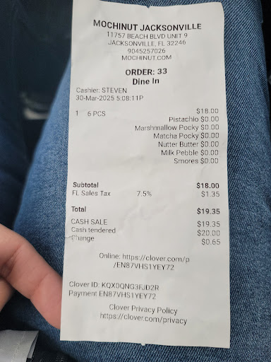 Mochinut has officially been open one full week. I visited this location off beach Blvd this past Wednesday or Thursday. There was a small line upon entry just after lunch. The line moved kinda slow but I think like me, it was everyoneâs first time here so no one really knew what to order. Itâs to be expected. The menu was on two tvâs the first part of me standing in line which was nice; I could look up and kinda decide what I want to order or at least have an idea by the time I get to the counter. Not long after, the manager or owner came out to the tvâs and switched them to regular tv, so no more menu. When I get to the order counter, I think it was the girls first day behind the register. I had to repeat my order a few times as sheâs asking the manager how to ring said object in, still getting the items wrong (which display on your side so you can see) I get it, itâs still new, totally okay. I ordered 3 donuts, = $10, and one boba tea which all range around $7-$8 dollars. Tipped $1. So total for 3 donuts and 1 boba drink was $19-$20. I feel like thatâs very high. I know prices these days are high but, for me not knowing the quality of these items yet, thatâs high. For parlor donuts further down on beach blvd, I will gladly pay the high price knowing the donut I get in return is not only large, but delicious. Good bang for your buck.
