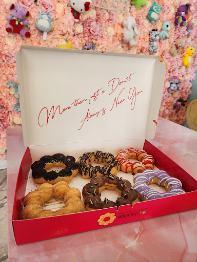 This Mochinut is located in the middle of a plaza on Beach Boulevard. It's easy to drive by if you aren't looking for it and it's surrounded by other Asian and Hispanic businesses.