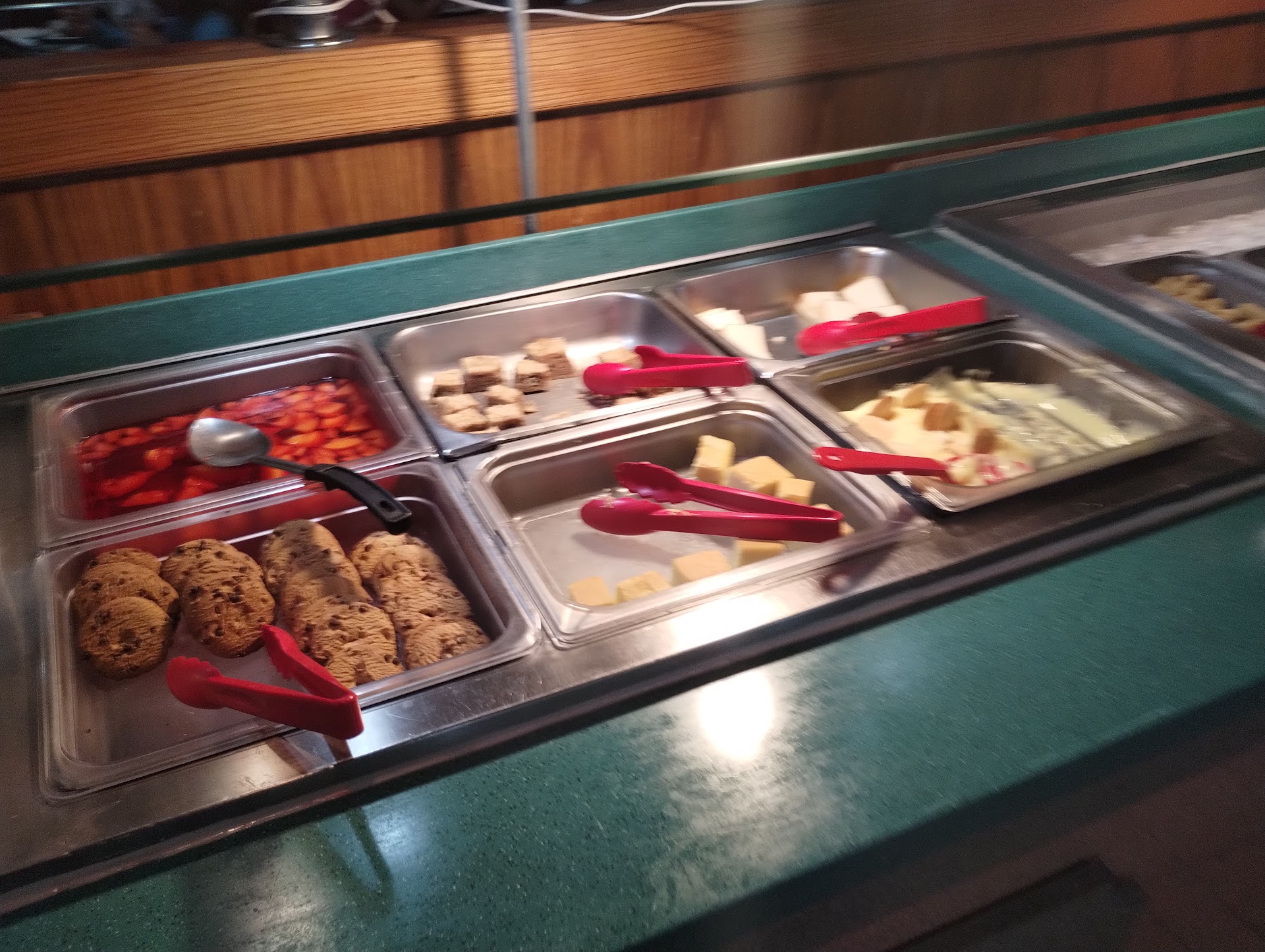 The temperature is. Nice in the building now and not hot. The servers are attentive and polite. The food quality has gone up substantially, the food tastes fresh and no longer feels like it has been sitting out all day. Can I just mention their slices of cake? They. Are. Delicious... Before they were not that good and dry, and I honestly would come just for the cake slices now.