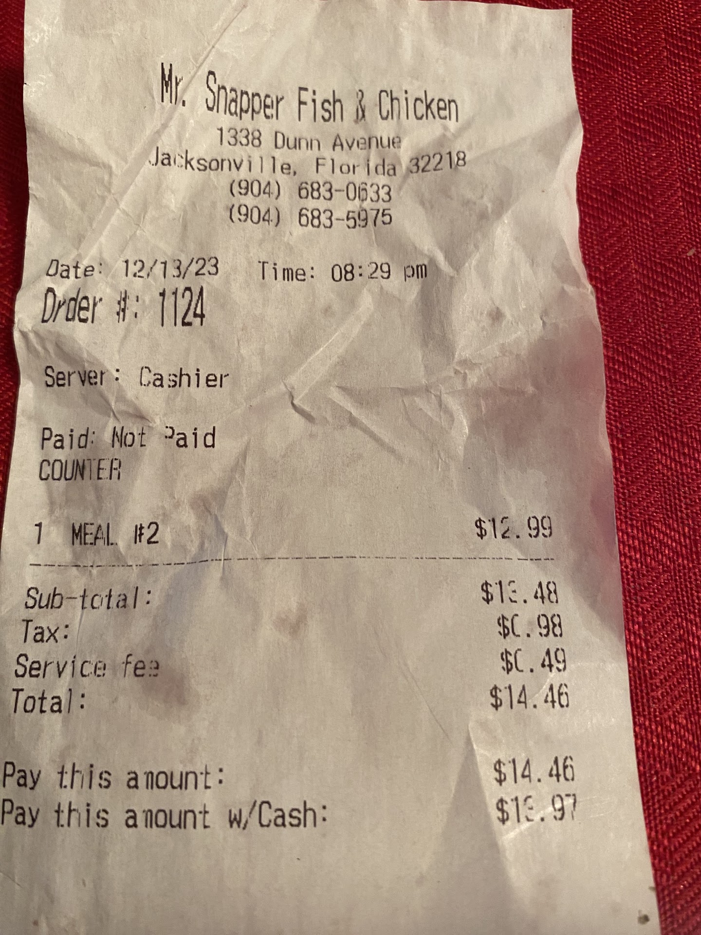 Had it not been for the wait time despite calling in, the deceptive additional charge, and non-receipt of the requested condiment then this would have been a positive review of at least 4 stars. I started to get Captain D's family meal and would have been happier along with nearly $10 less spent. I may try Mr. Snappers again but will adjust, question, and order with this...