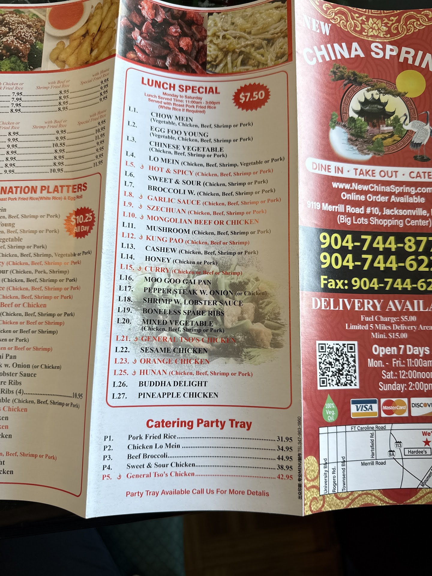 Read moreI once gave them 5;stars and excellent feedback but as of late, something has been wrong with all my orders. 08/20/ was the last straw for me. The customer service now is horrible!! They hang up on you and are impatient. The manager told me I was talking to much to her, they have started charging a dollar per mile for delivery over 3 and the food used to be very fresh, cooked and seasoned properly. I have received raw broccoli and my list could go on. I was told who they don't give you your original receipts anymore and arguing with as customer is a no no. I've been ordering from the for a 1.5years and now their under new mgmt?? Take my advice, find a different place and save this...