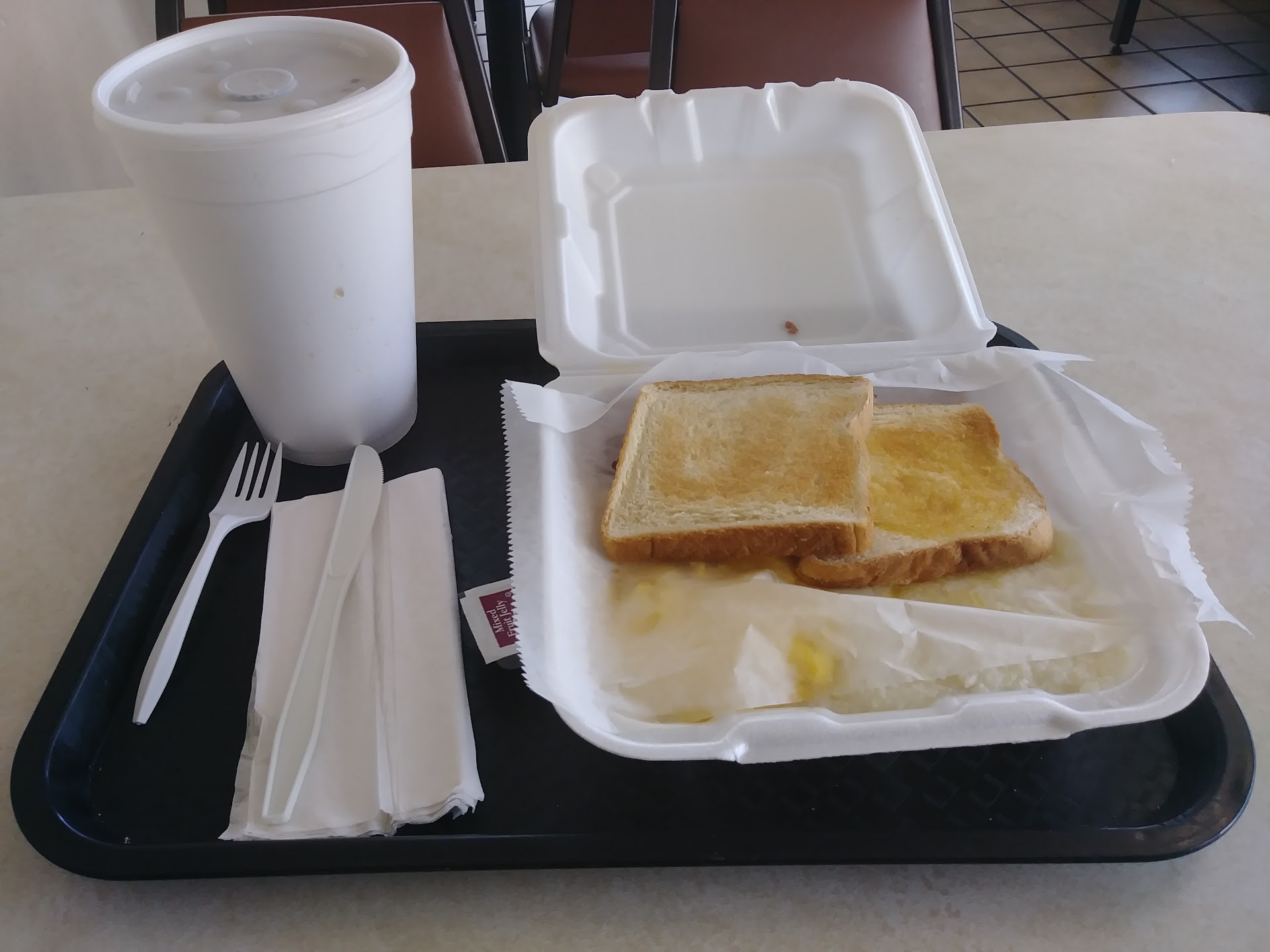 I could have judged this restaurant on many different levels but that is not my intent or reason for why I stopped there this morning I simply wanted something to eat I did not expect to get all this push back for a place that waited on eight other people while I waited 30 minutes for a in-house order that I still got in a bag and incomplete my hash browns were so hard they crunch while I choose them the Grits were stiff the eggs were done right but for 30 minutes you think they would have either cut the price in half giving it to me on the house or better yet just taking my order and giving it to me within at least 7 minutes or at the most even 15 and that's giving a lot but 35 minutes and 8 customers later I don't think so if you want to be such strict people let's talk about the condition of the restaurant the ceilings falling in the wires exposed the messed up paint on the wall the bad conditions of the table and chairs since you want to get me started on a restaurant that all I wanted to do was get something to eat but since you want to press me for the particulars I've also added photos...... HAVE A NICE DAY..... sometimes it is best to leave things alone and not stir up The Hornet's Nest....ALL I WANTED WAS A QUICK BITE TO...
