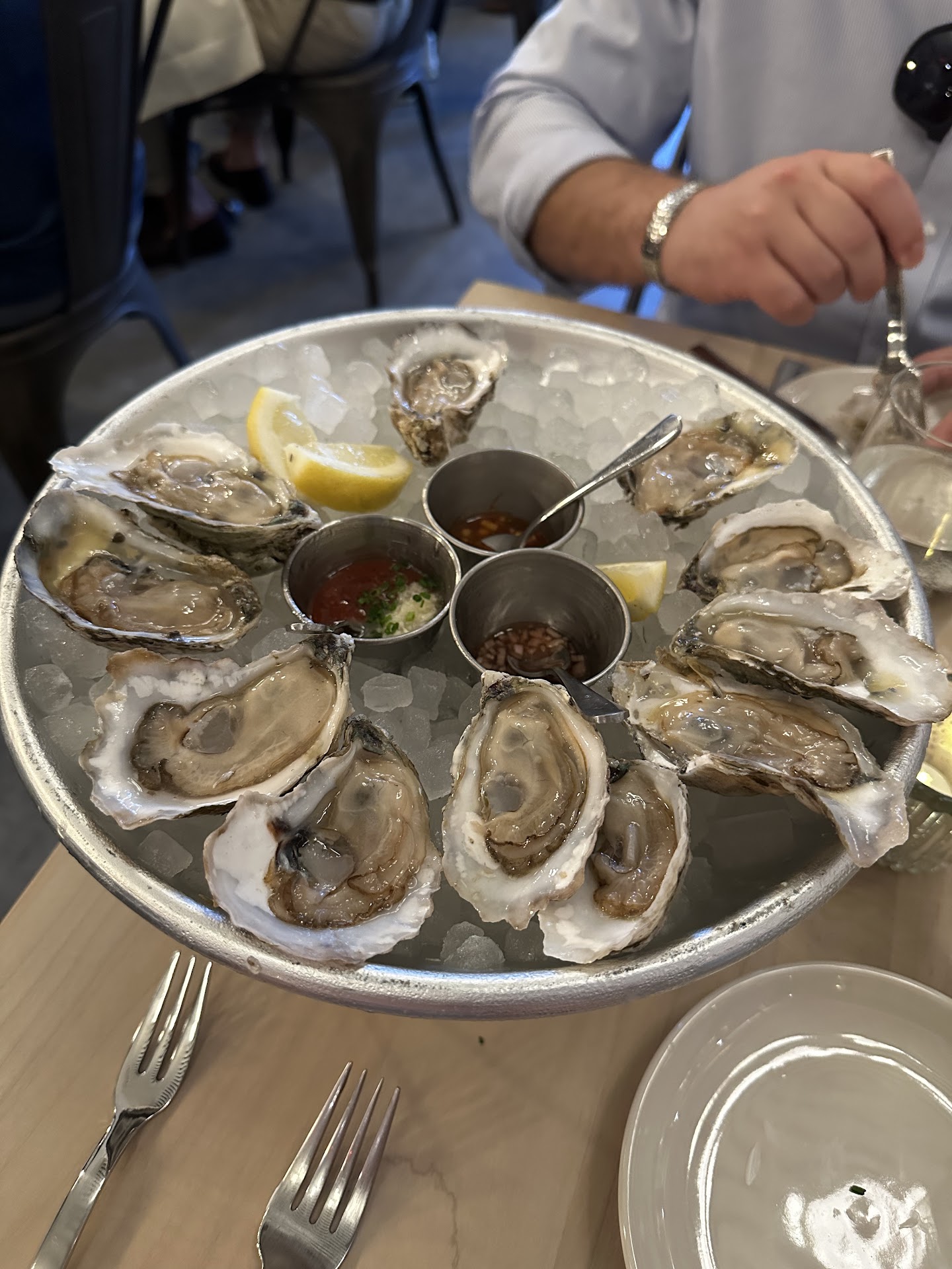Food wise: Dozen Pemaquid oysters: these were great! Having family in ME these are our favorite kind to get. It was wonderful to see them freshly shucked at the raw bar. The kimchi sauce really made them shine.