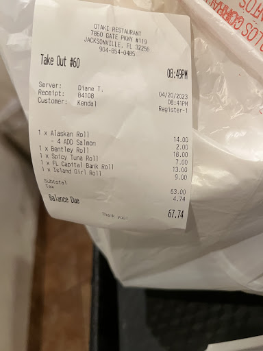 Read moreThe manager was super rude, the prices on Google are not correct even when you type in Otaki restaurant and it brings up all of their information, the location times and menu. My friend and I tried to order out our total should’ve been $37, the cashier said it would be $67 when I got to the takeout area I looked at the prices on my receipt, They were not what the website says, she asked if I wanted a manager I said yes. The manager came over and she said that the Google prices are different than their menu prices and it wasn’t her fault and she wouldn’t fix it, I told her that she should honor the price. How can you pull up a restaurant online the phone number the website the address and everything is correct but the price is different in store? She told me next time I order with them it is my job as a customer to check my prices over the phone. She says this is a common issue and she wouldn’t do anything about it. I told her she should honor the prices because as a customer, it is not my job to fix their website I’m not the one that made the website with the incorrect prices. She yelled at me and told me to get out and I can leave. I told her I didn’t want the food they can keep the $67 sushi that they miss priced and miss lead their customers to buy. Horrible experience that woman is a terrible manager and honestly very angry. I kept a very monotone. As a matter fact, I had my two month old son in my arms while she threw her hands in the air and told me to get out of the establishment. I wasn’t causing a scene. She had no right to treat me like that. Get your website fix lady get correct information online. It is not the customers responsibility to fix...